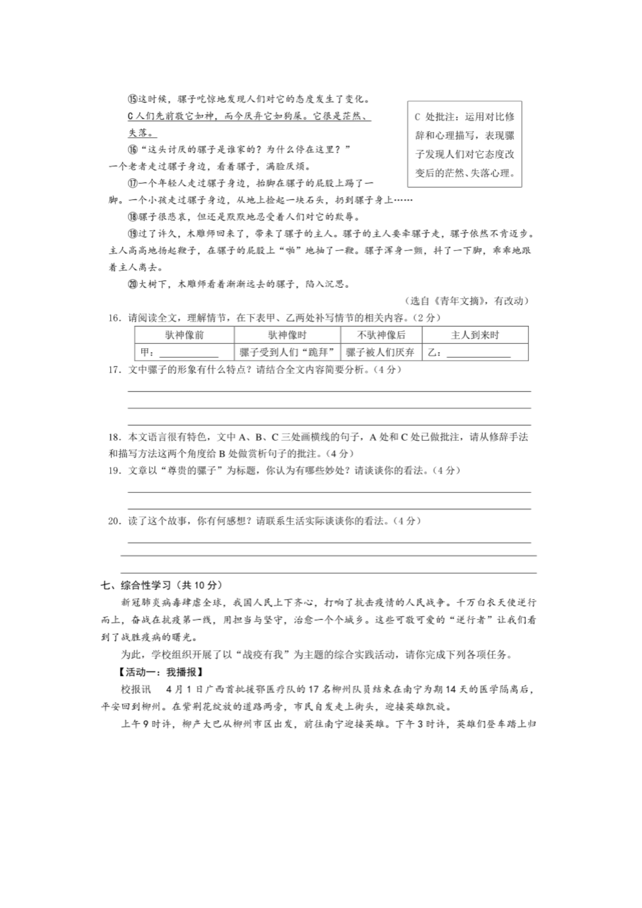 【文档名称】 2020年广西柳州中考语文真题及答案(图片版).doc