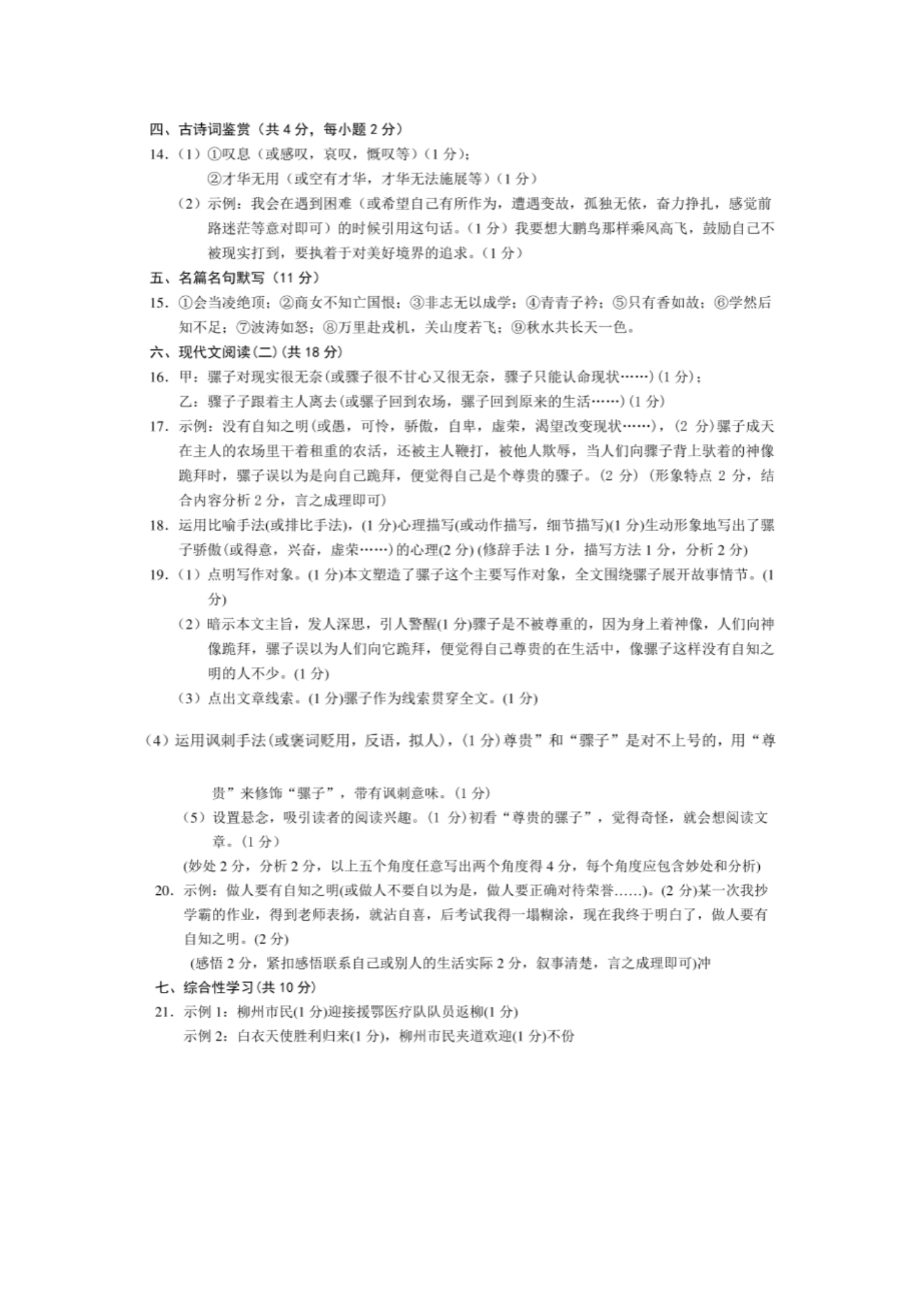 【文档预览】 无忧考网整理发布2020年广西柳州中考语文真题及答案(图片版),前五页预览如下: