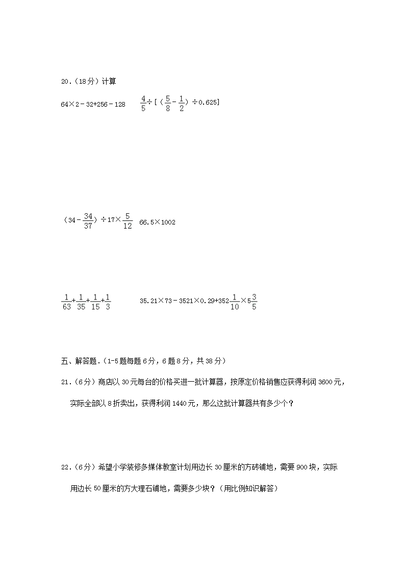 【文档预览】 无忧考网整理发布2017年河北邯郸小升初数学真题及答案(Word版),前五页预览如下: