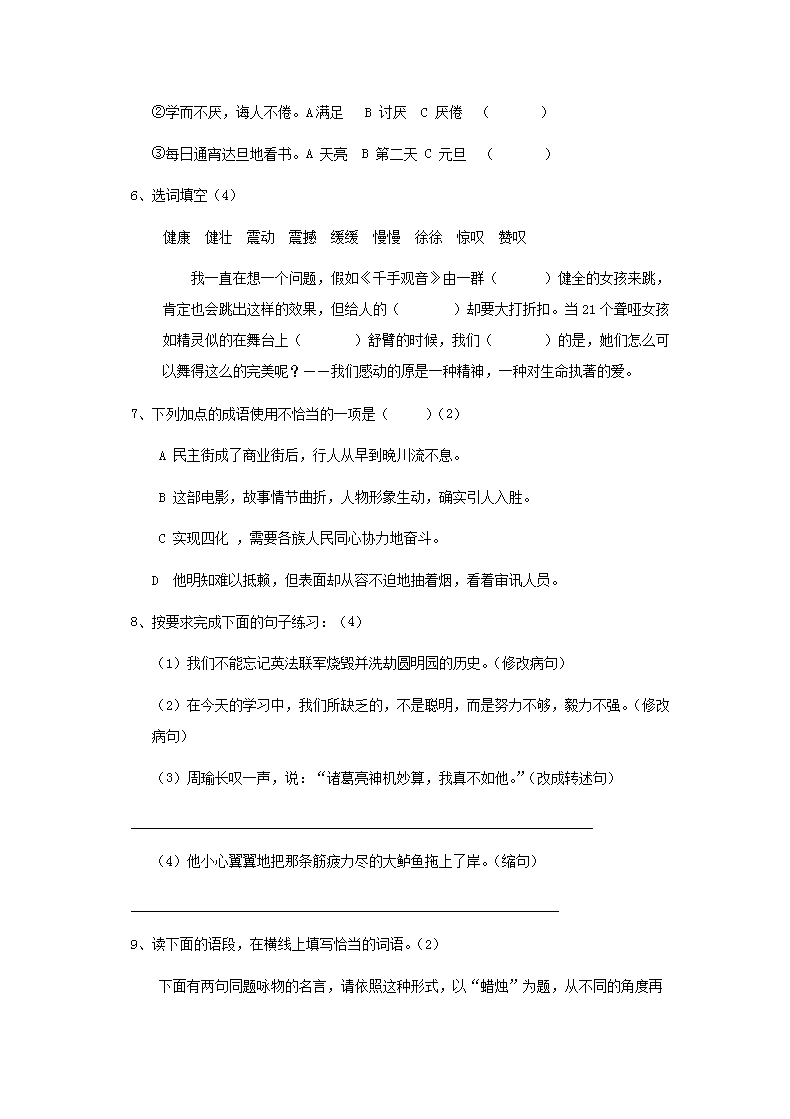 【文档预览】 无忧考网整理发布2019年四川成都小升初语文真题及答案(Word版),前五页预览如下: