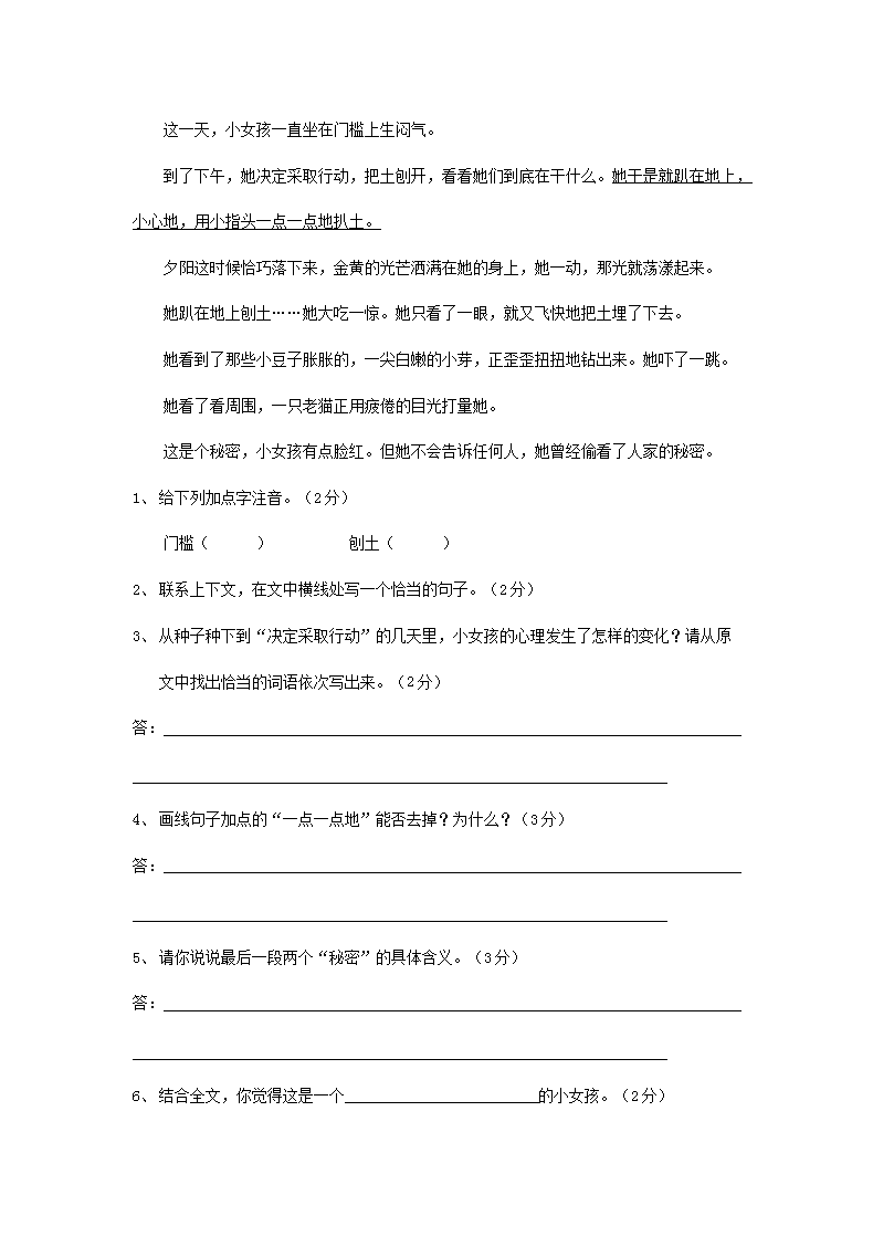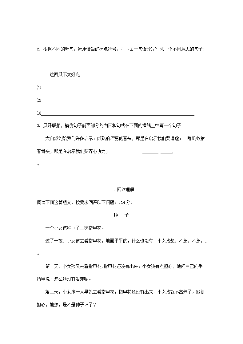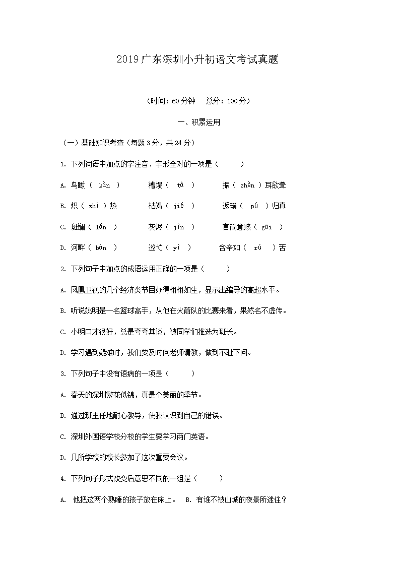 【文档名称】 2019广东深圳小升初语文考试真题(Word版).doc