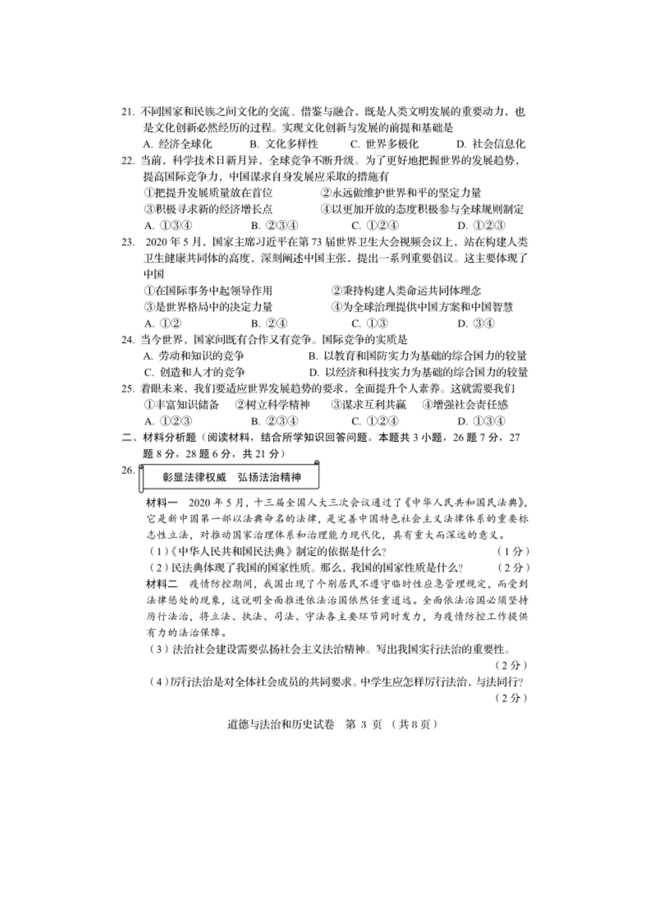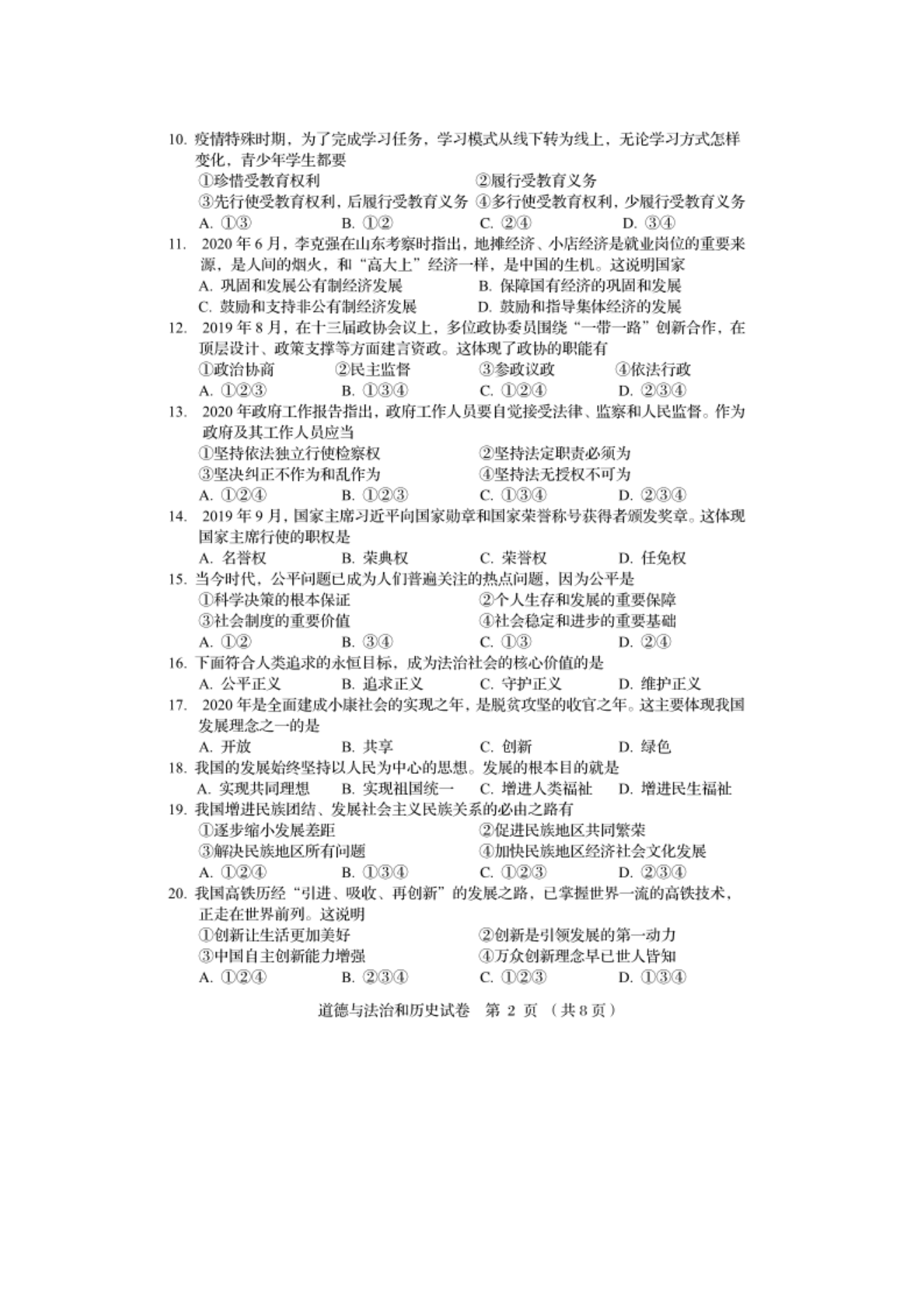 【文档名称】 2020年辽宁阜新中考道德与法治真题及答案(图片版).doc