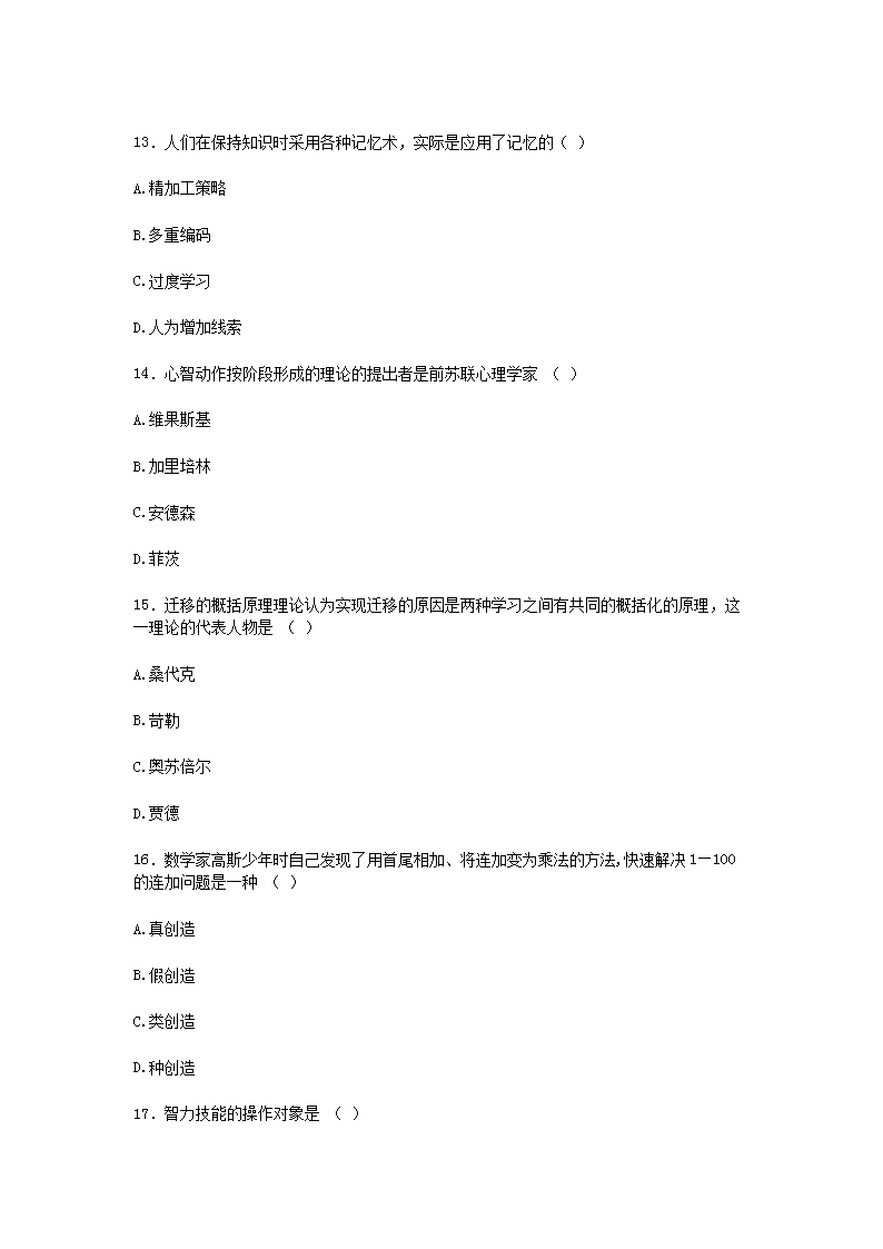 【文档名称】 2008下半年甘肃教师资格中学心理学真题及答案(Word版).doc