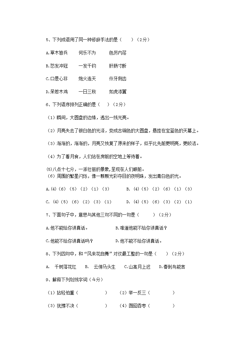 【文档预览】 无忧考网整理发布2016贵州小升初语文真题及答案(Word版),前五页预览如下: