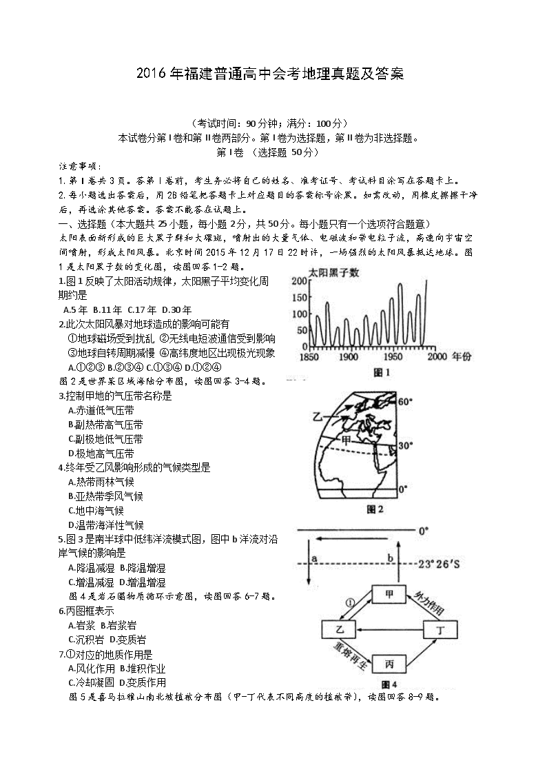 【文档预览】 无忧考网整理发布2016年福建普通高中会考地理真题及答案(Word版),前五页预览如下: