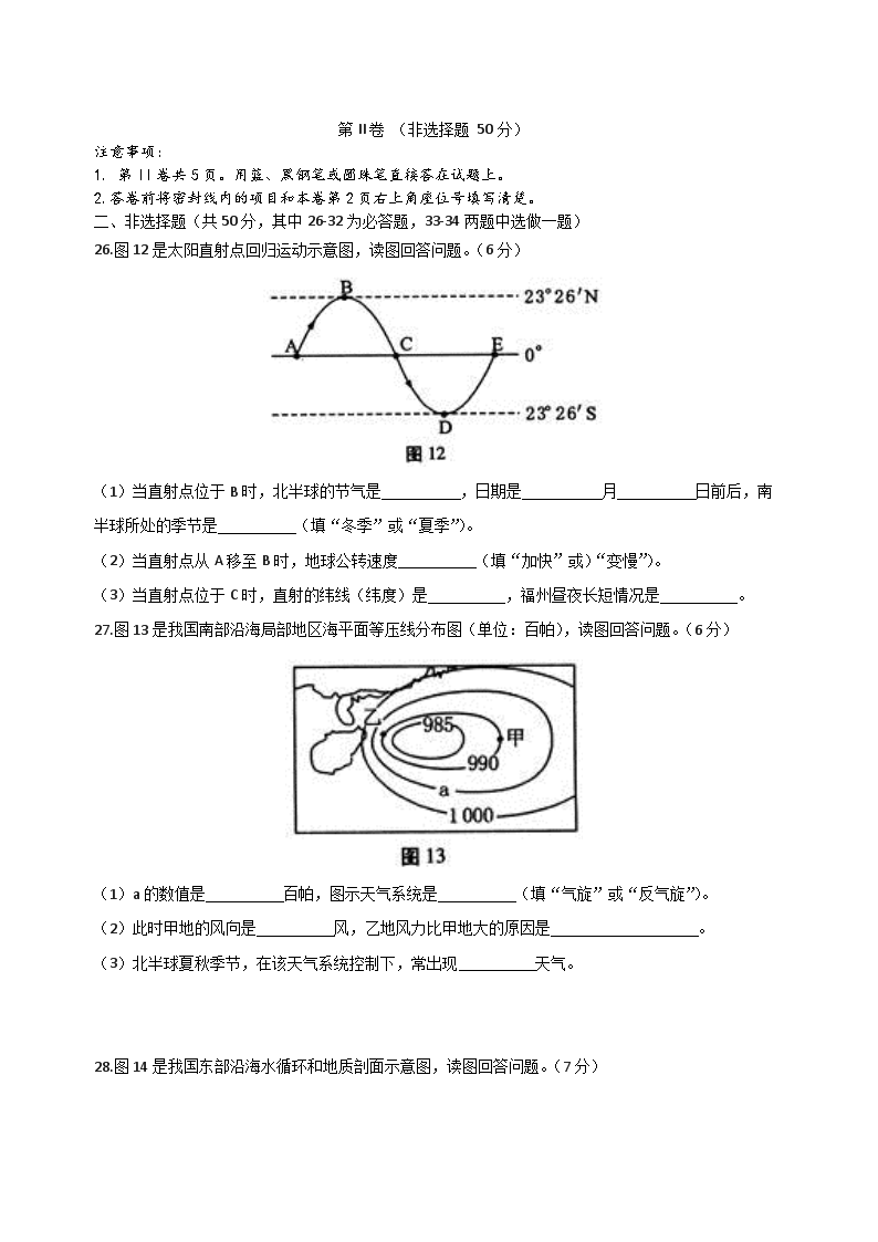 【文档名称】 2016年福建普通高中会考地理真题及答案(Word版).doc