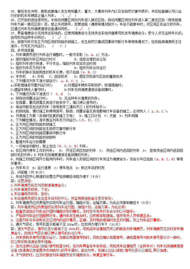 【文档名称】 列车调度员上岗考试题及答案(Word版).doc