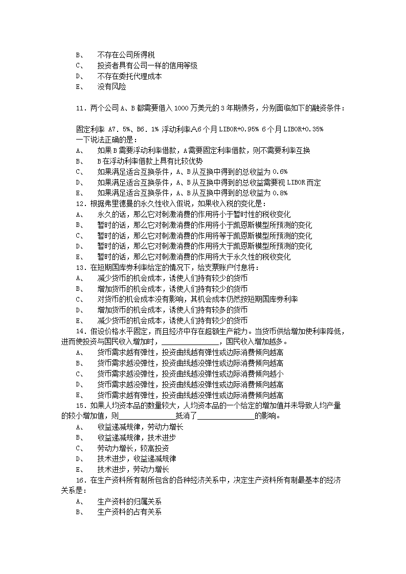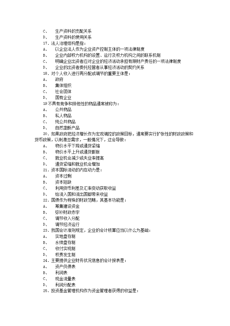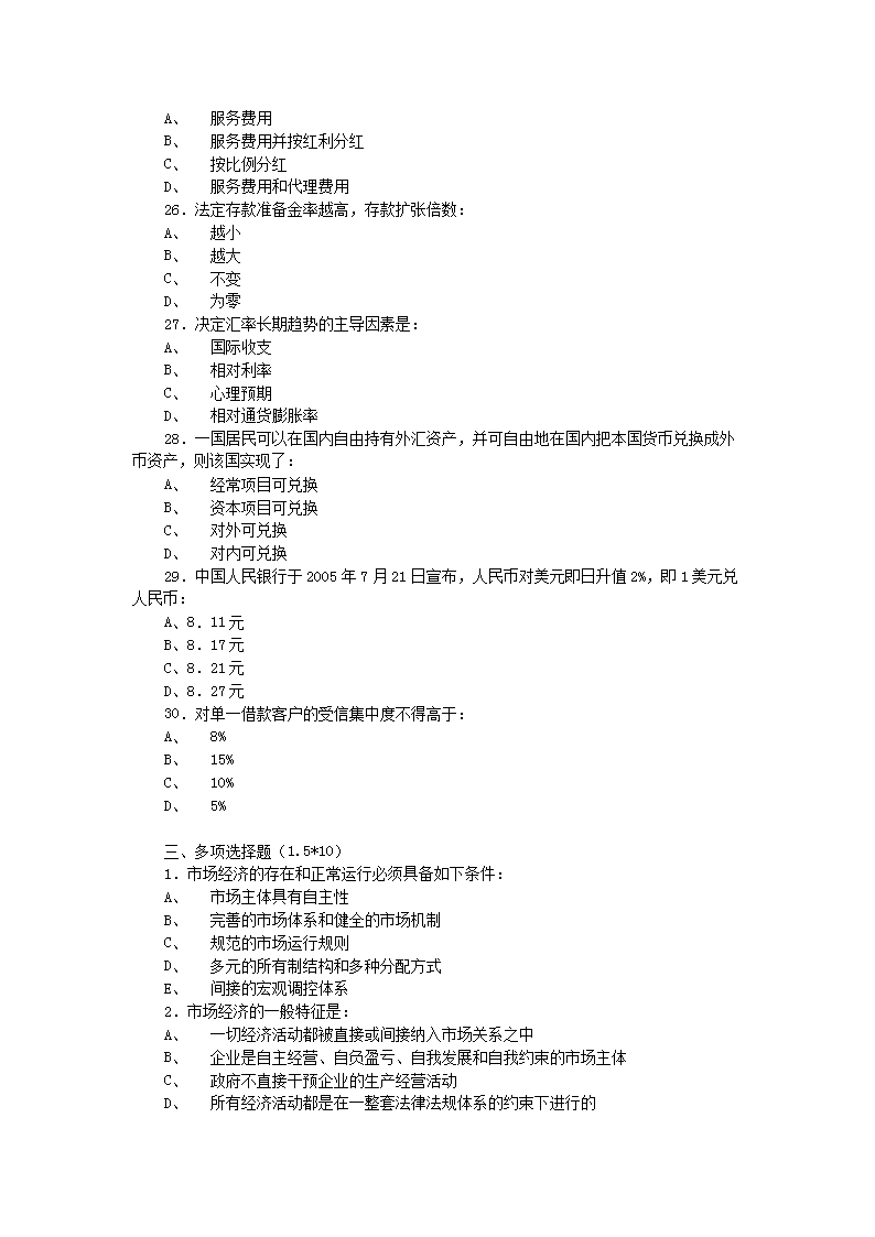 【文档名称】 2006年12月23日中国人民银行招聘笔试题(Word版).doc