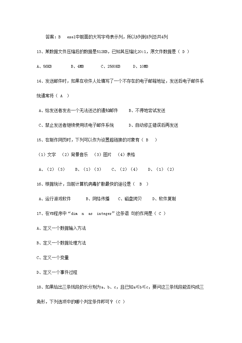 【文档预览】 无忧考网整理发布2015年山东普通高中会考信息技术考试真题及答案(Word版),前五页预览如下: