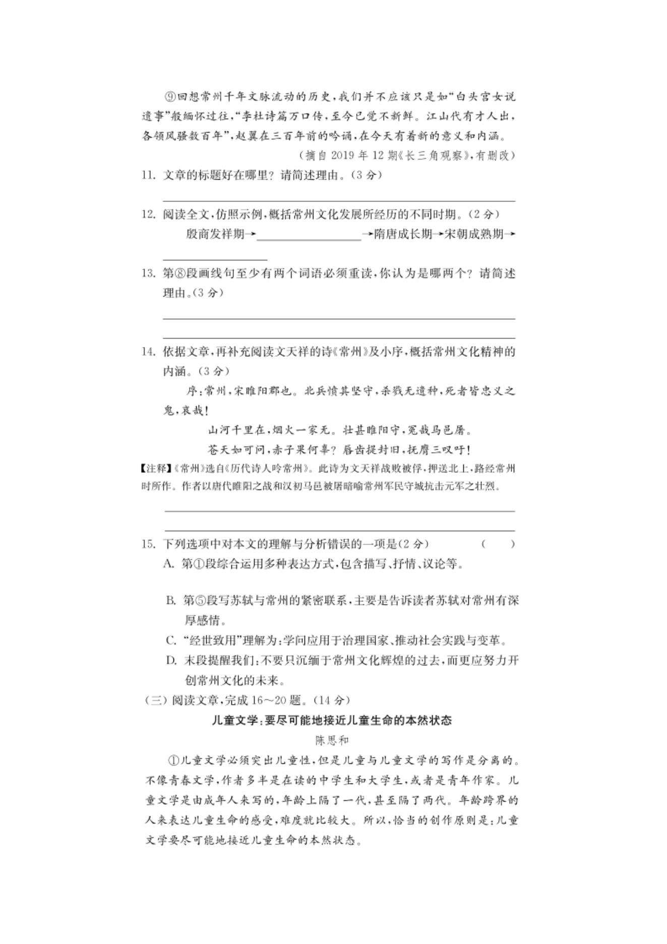 【文档名称】 2020年江苏常州中考语文真题及答案(图片版).doc