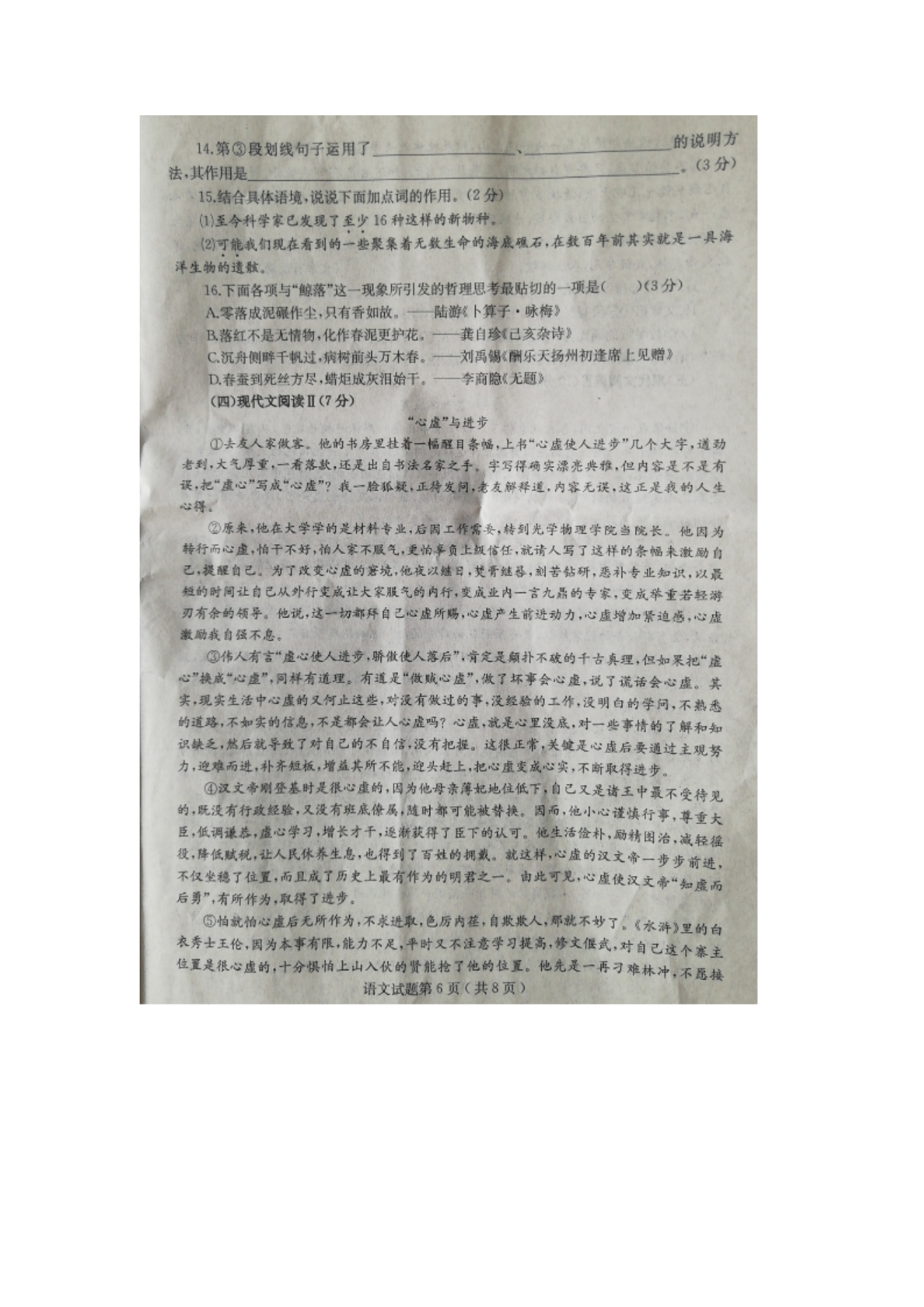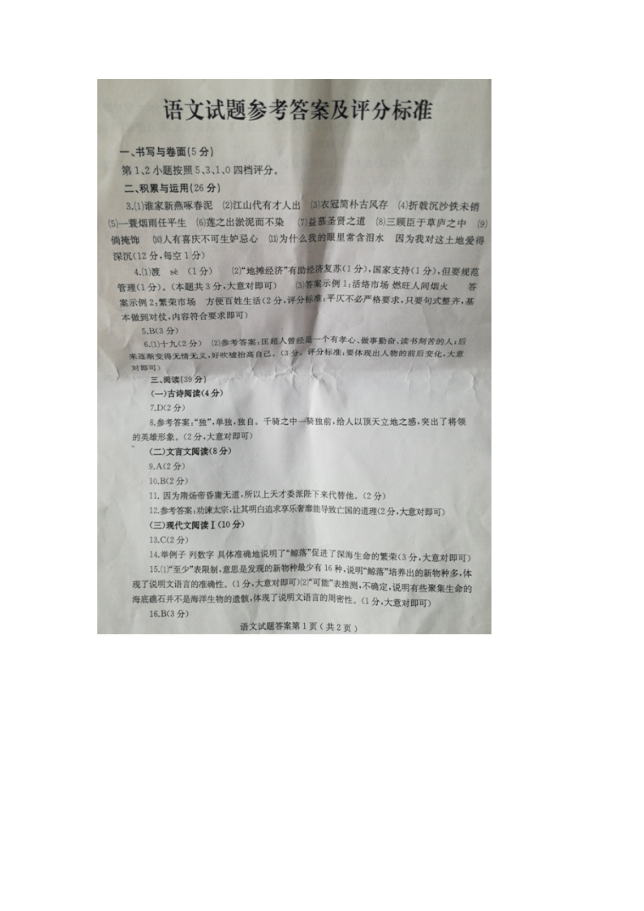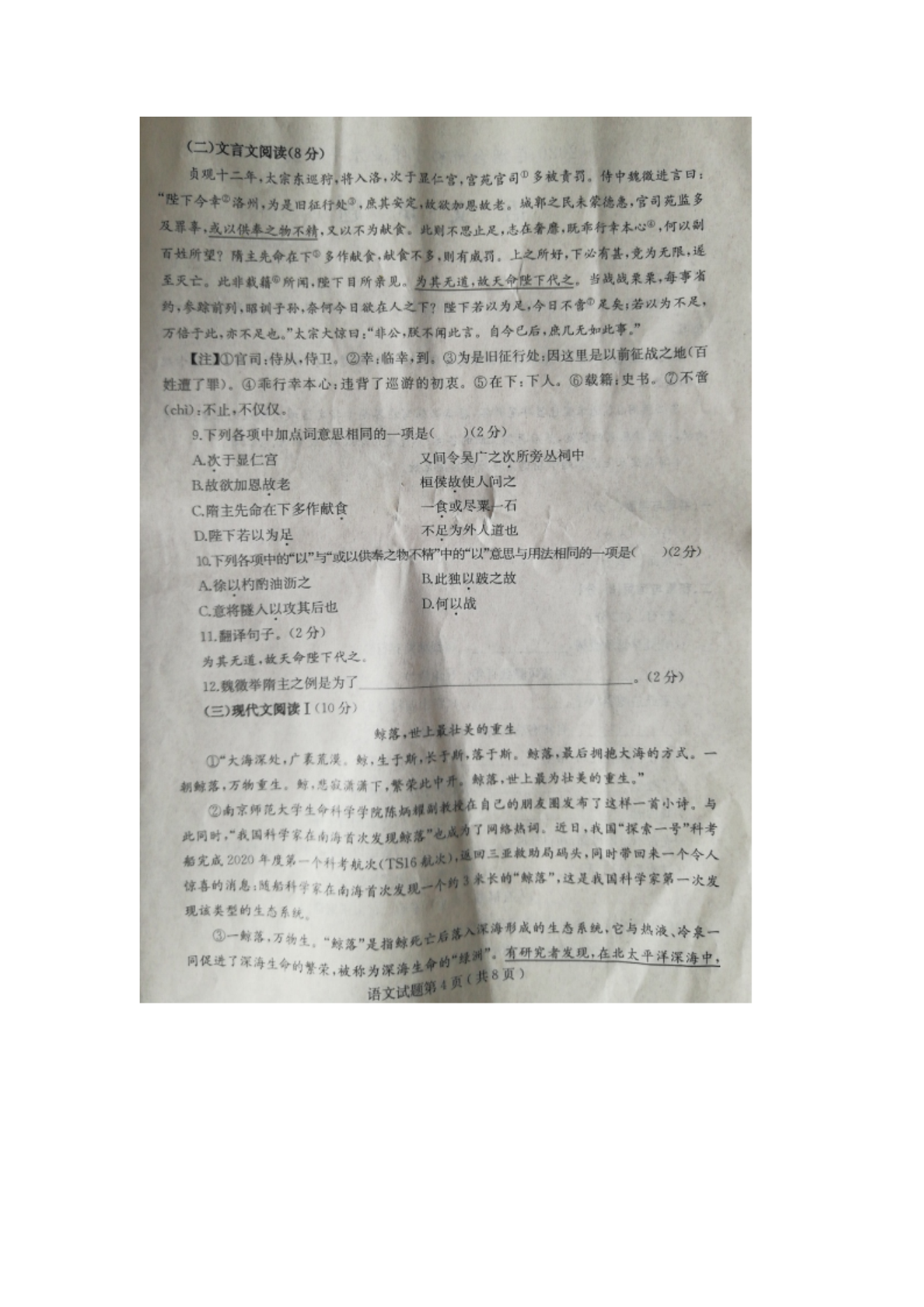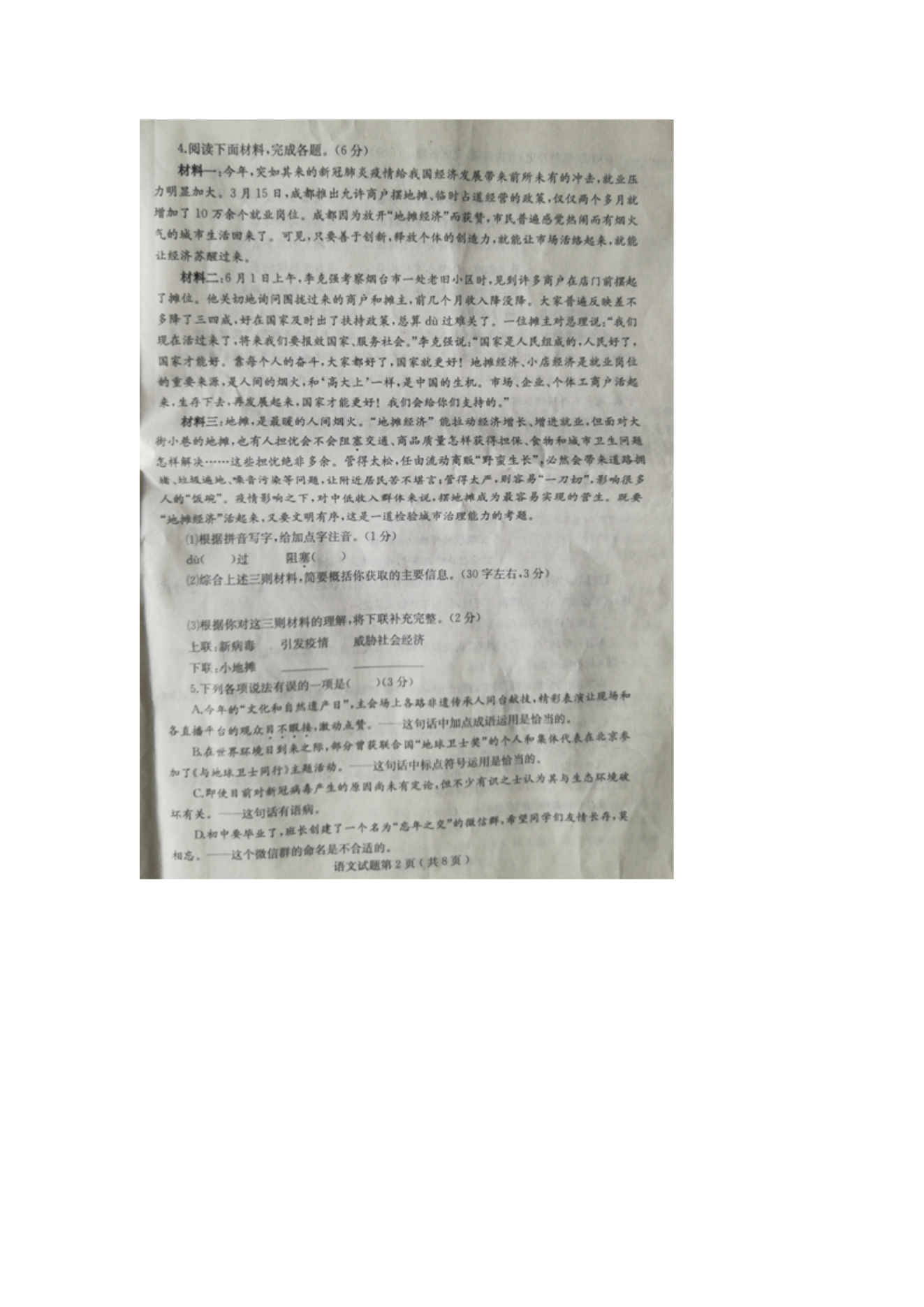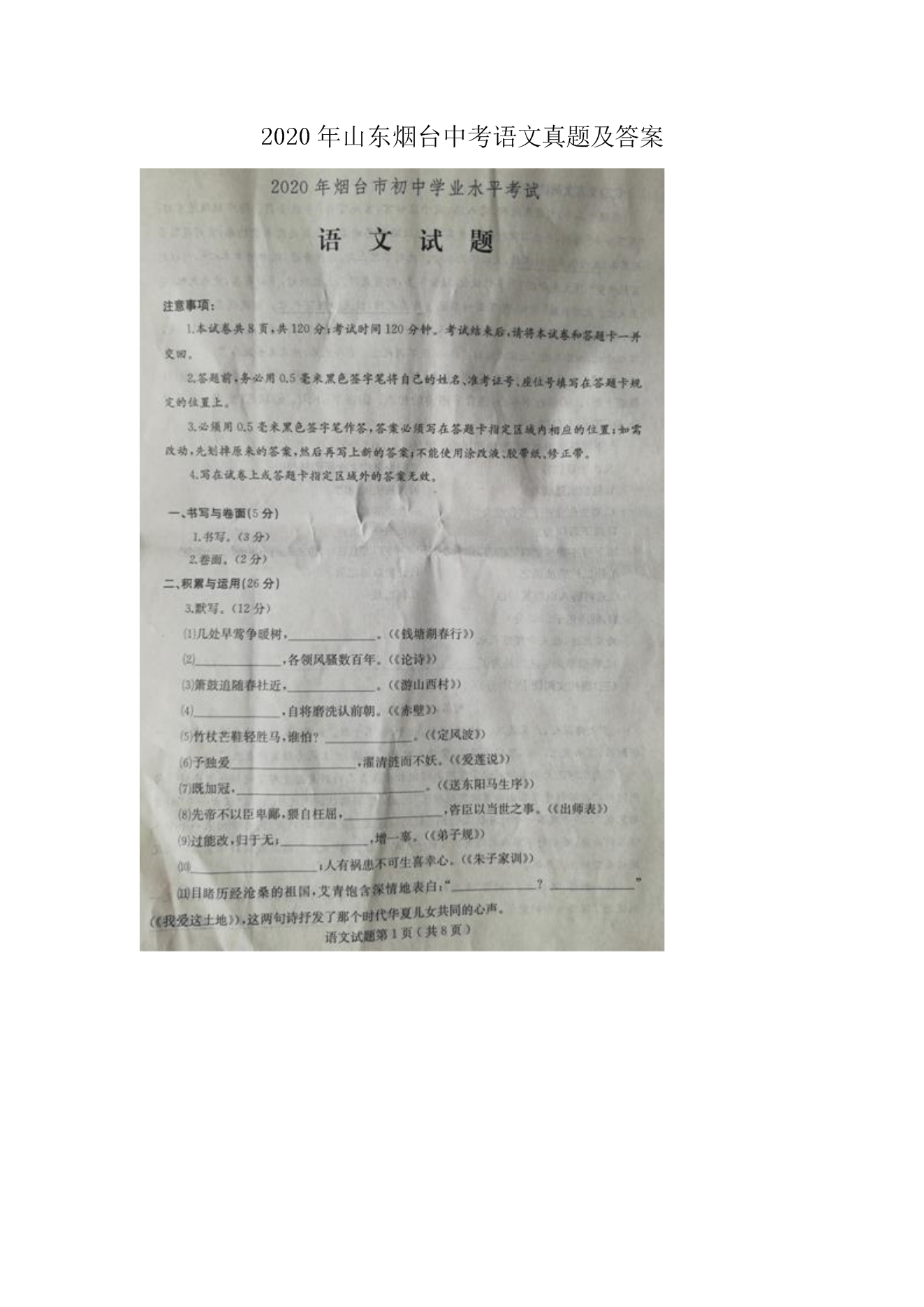 【文档名称】 2020年山东烟台中考语文真题及答案(图片版).doc