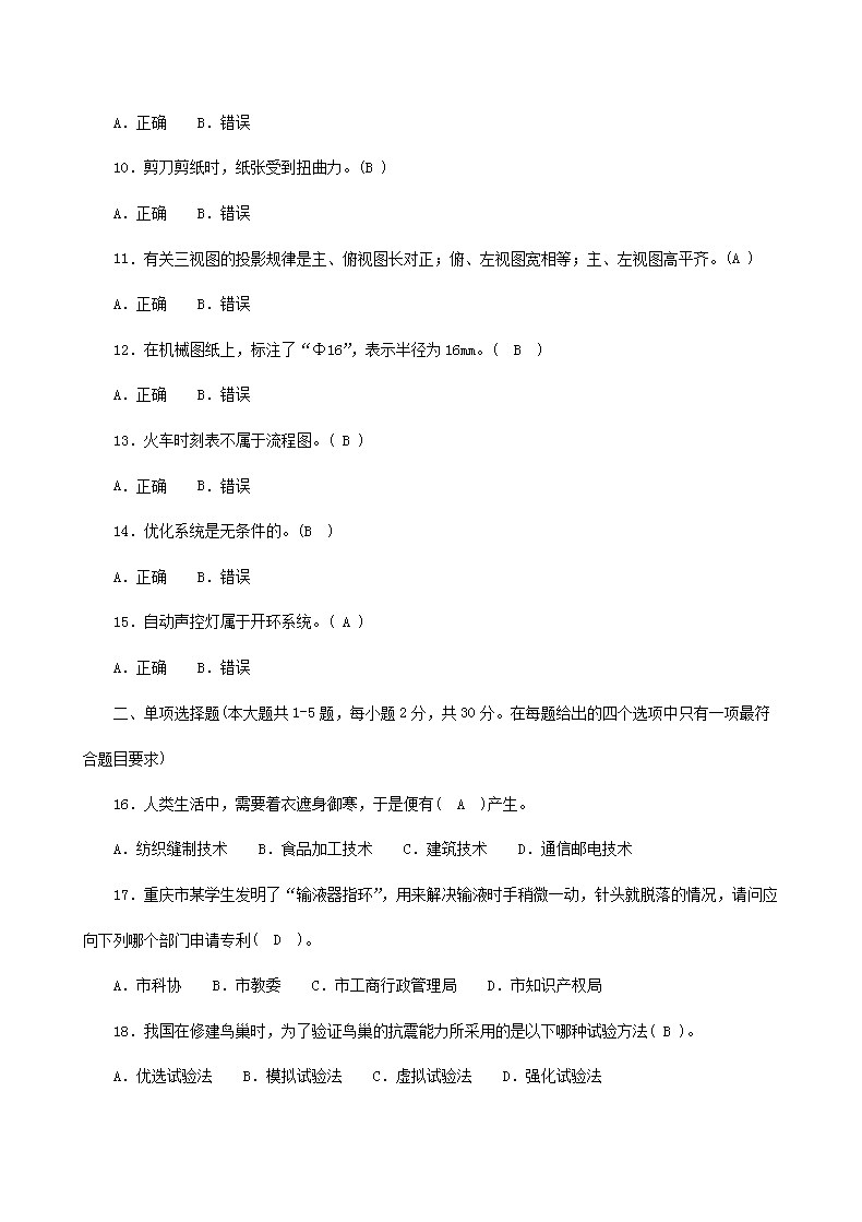 【文档预览】 无忧考网整理发布2014年重庆普通高中会考通用技术真题(Word版),前五页预览如下: