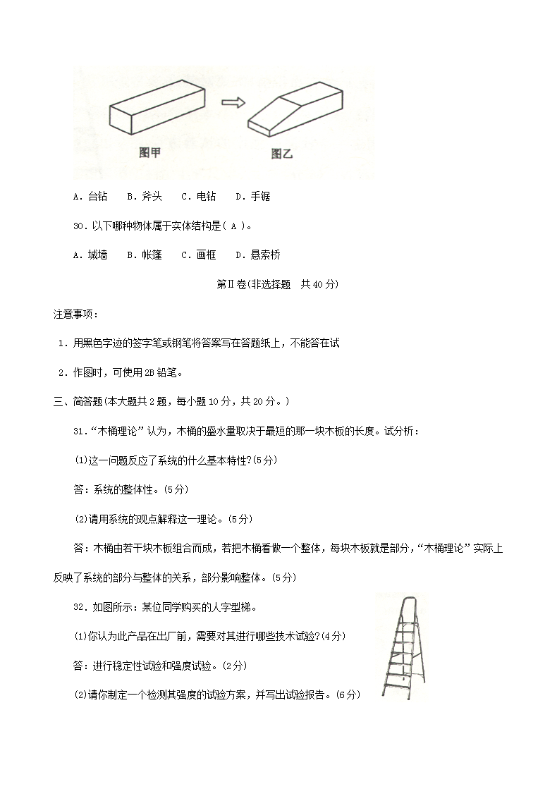 【文档名称】 2014年重庆普通高中会考通用技术真题(Word版).doc