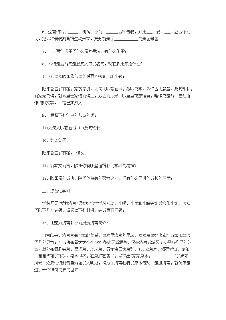 【文档预览】 无忧考网整理发布2016年山东济南小升初语文真题及答案(Word版),前五页预览如下: