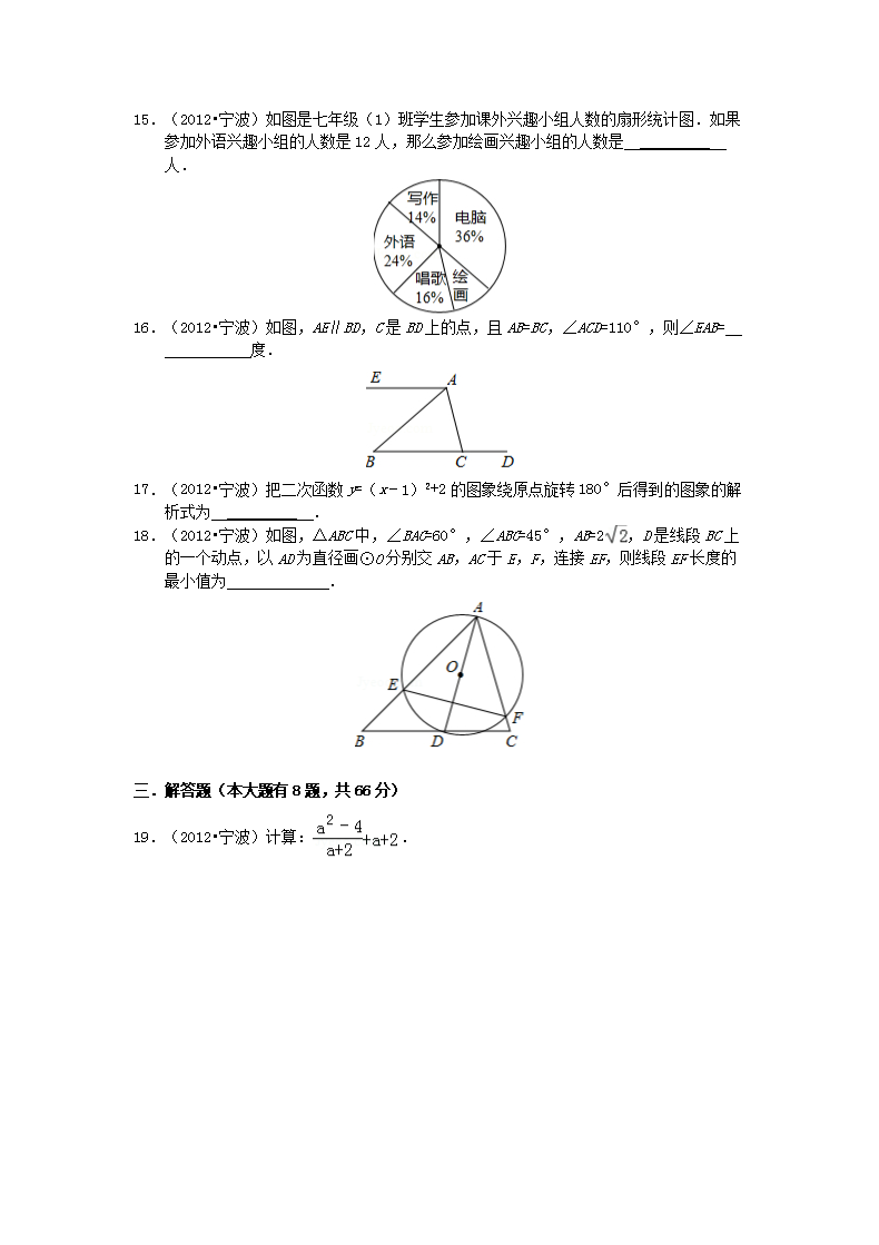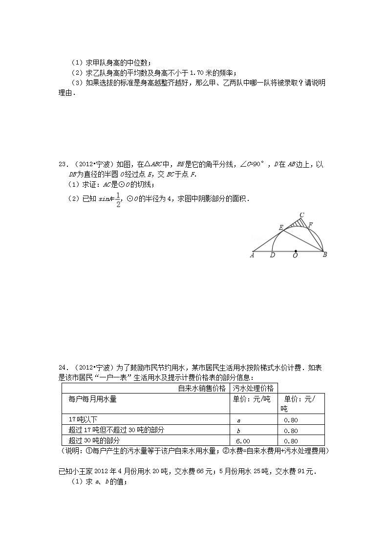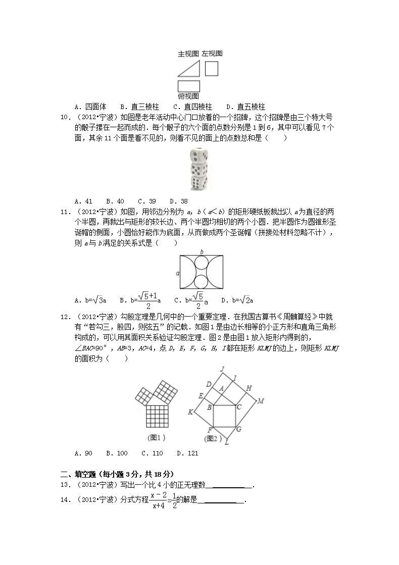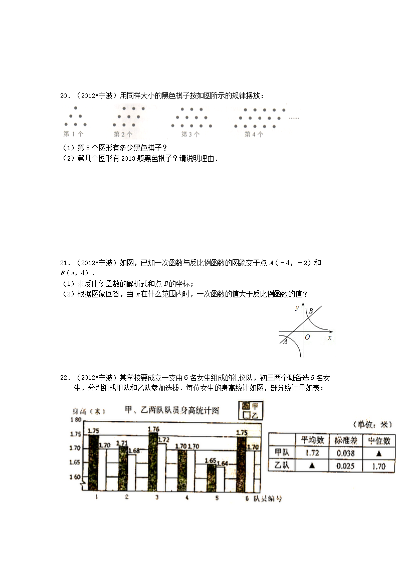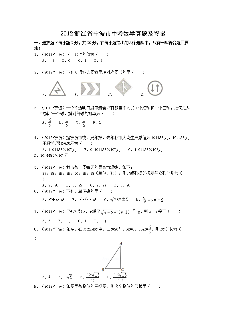 【文档名称】 2012浙江省宁波市中考数学真题及答案(Word版).doc