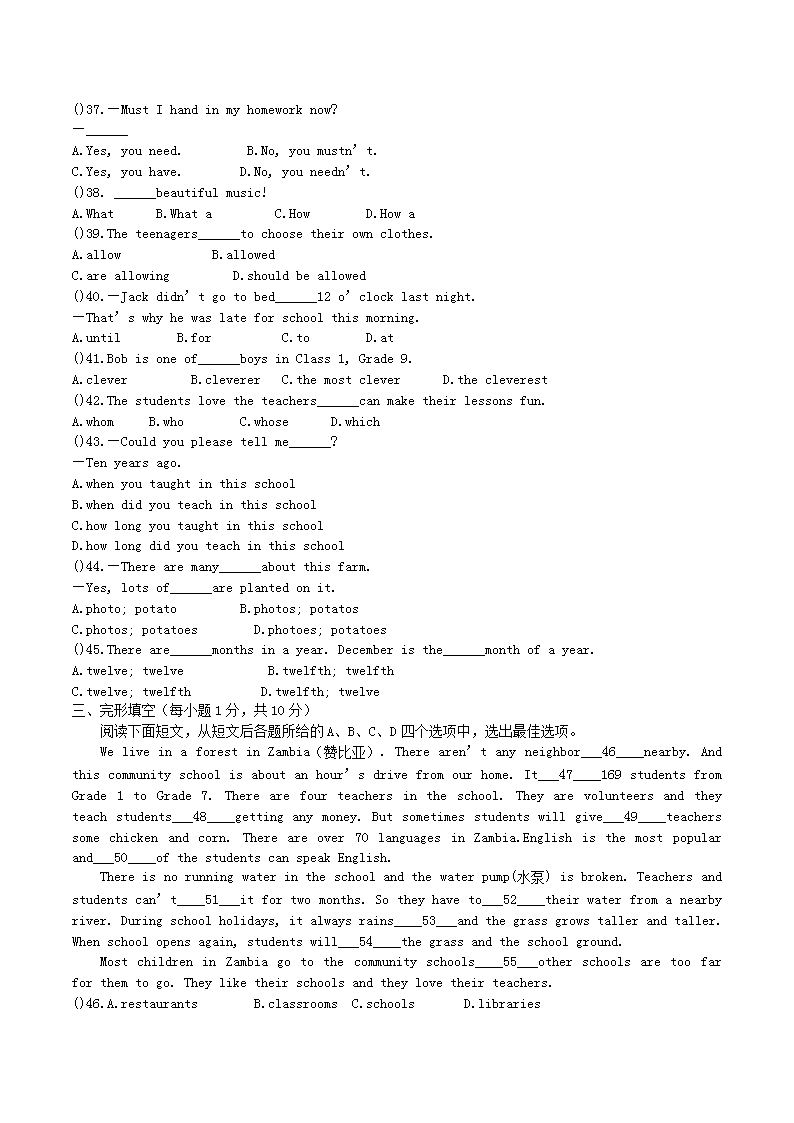 【文档预览】 无忧考网整理发布2016年广西来宾市中考英语真题及答案(Word版),前五页预览如下:
