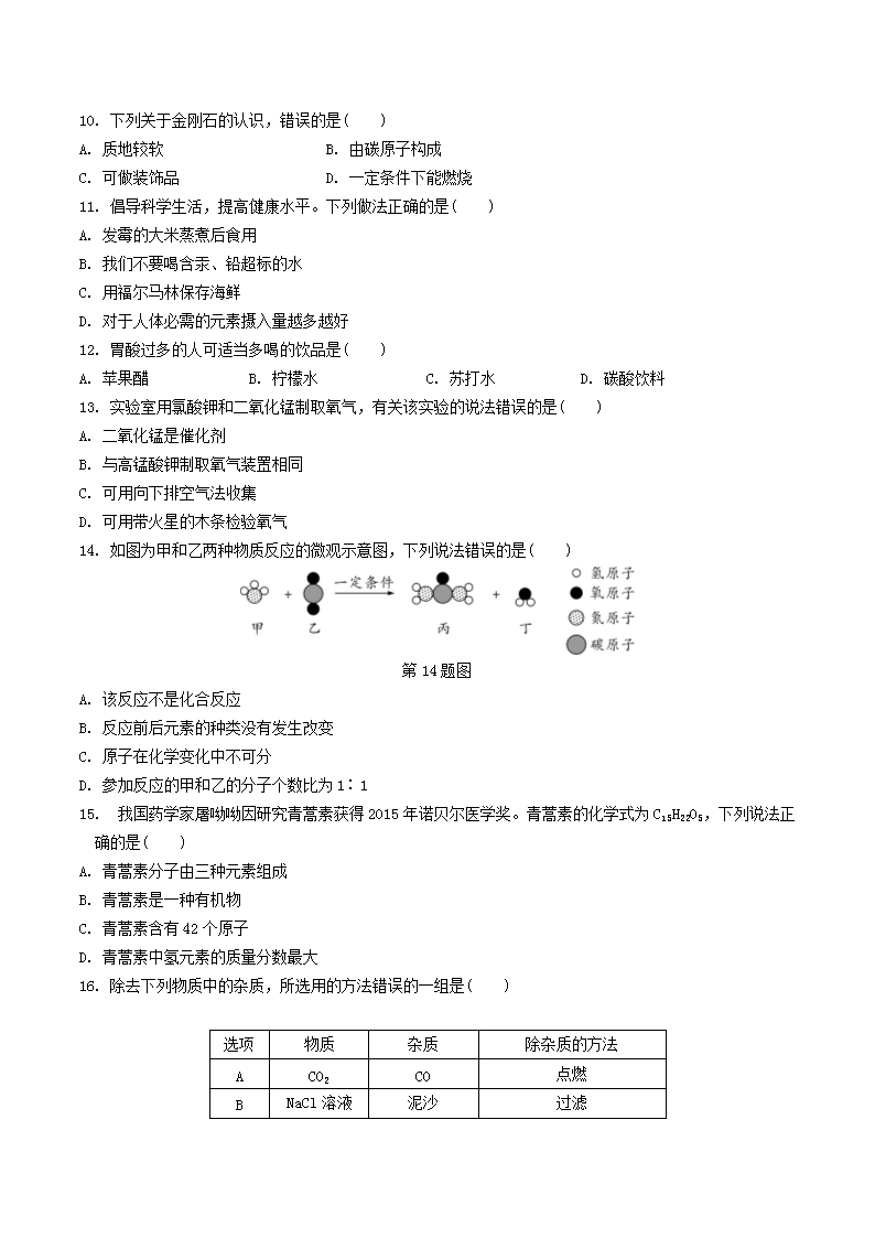 【文档名称】 2016年广西玉林市中考化学真题及答案(Word版).doc