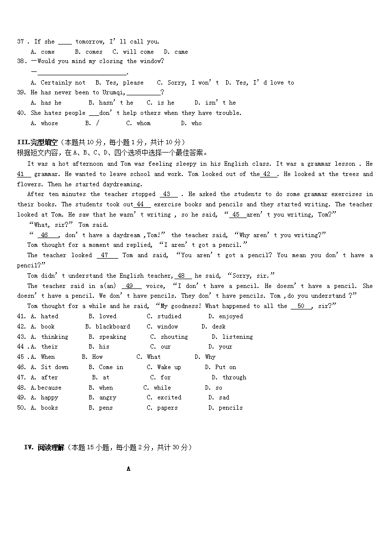 【文档名称】 2013新疆中考英语真题及答案(Word版).doc