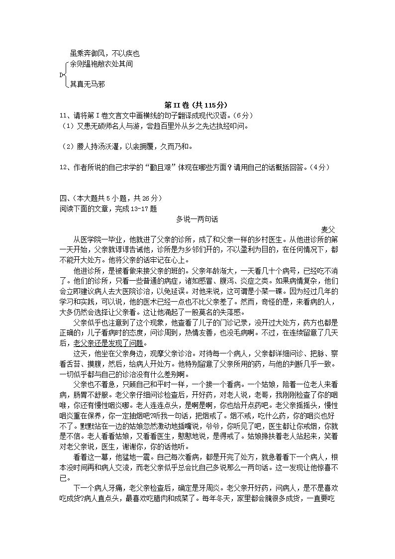 【文档预览】 无忧考网整理发布2012新疆乌鲁木齐中考语文真题及答案(Word版),前五页预览如下: