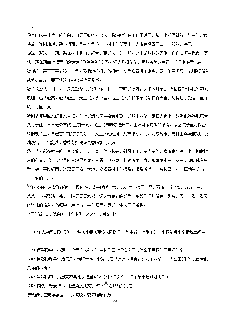 【文档名称】 2020年宁夏吴忠中考语文试题试卷及答案(Word版).doc
