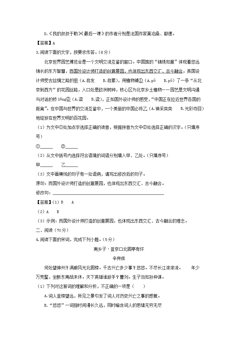 【文档名称】 2019年福建省福州市中考语文真题及答案(Word版).doc
