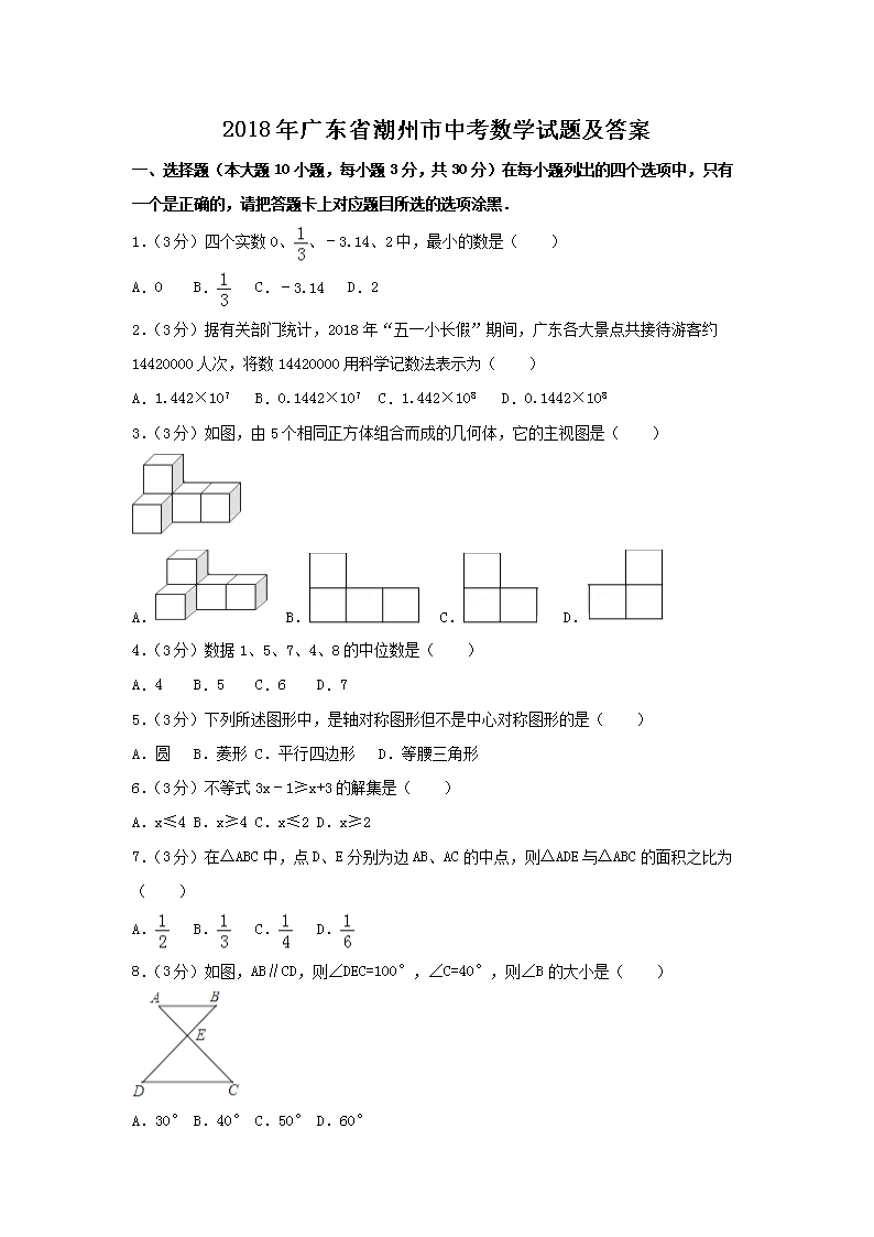 【文档名称】 2018年广东省潮州市中考数学试题及答案(Word版).doc