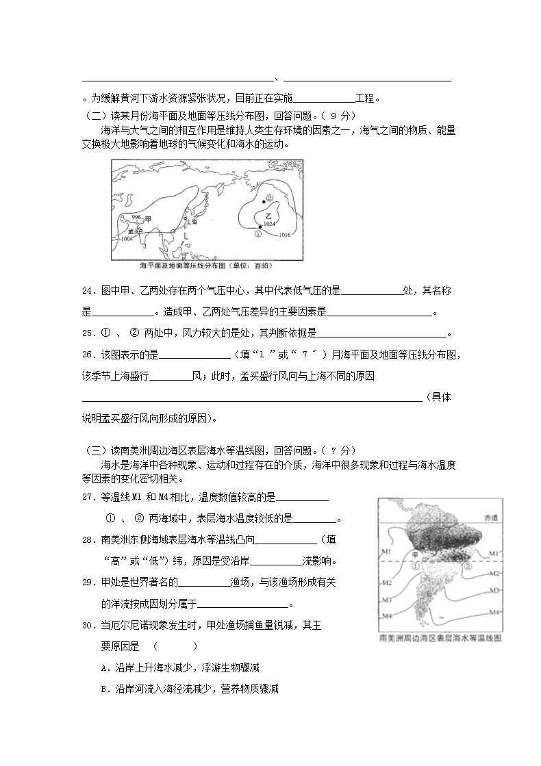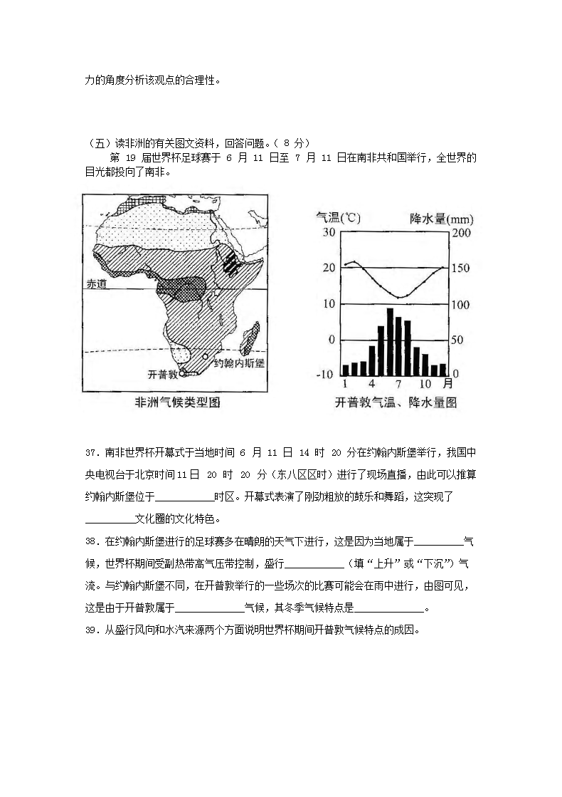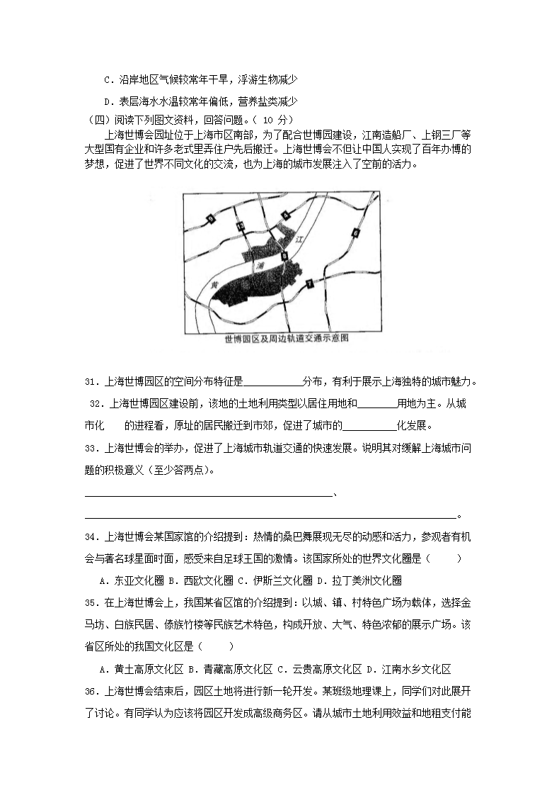 【文档名称】 2010年上海普通高中会考地理真题及答案(Word版).doc