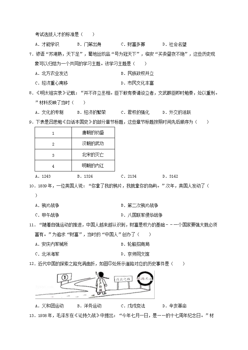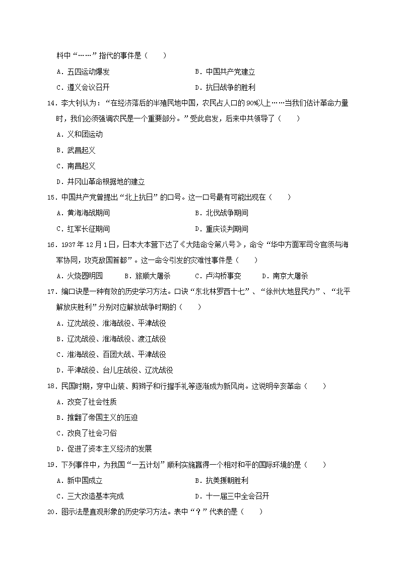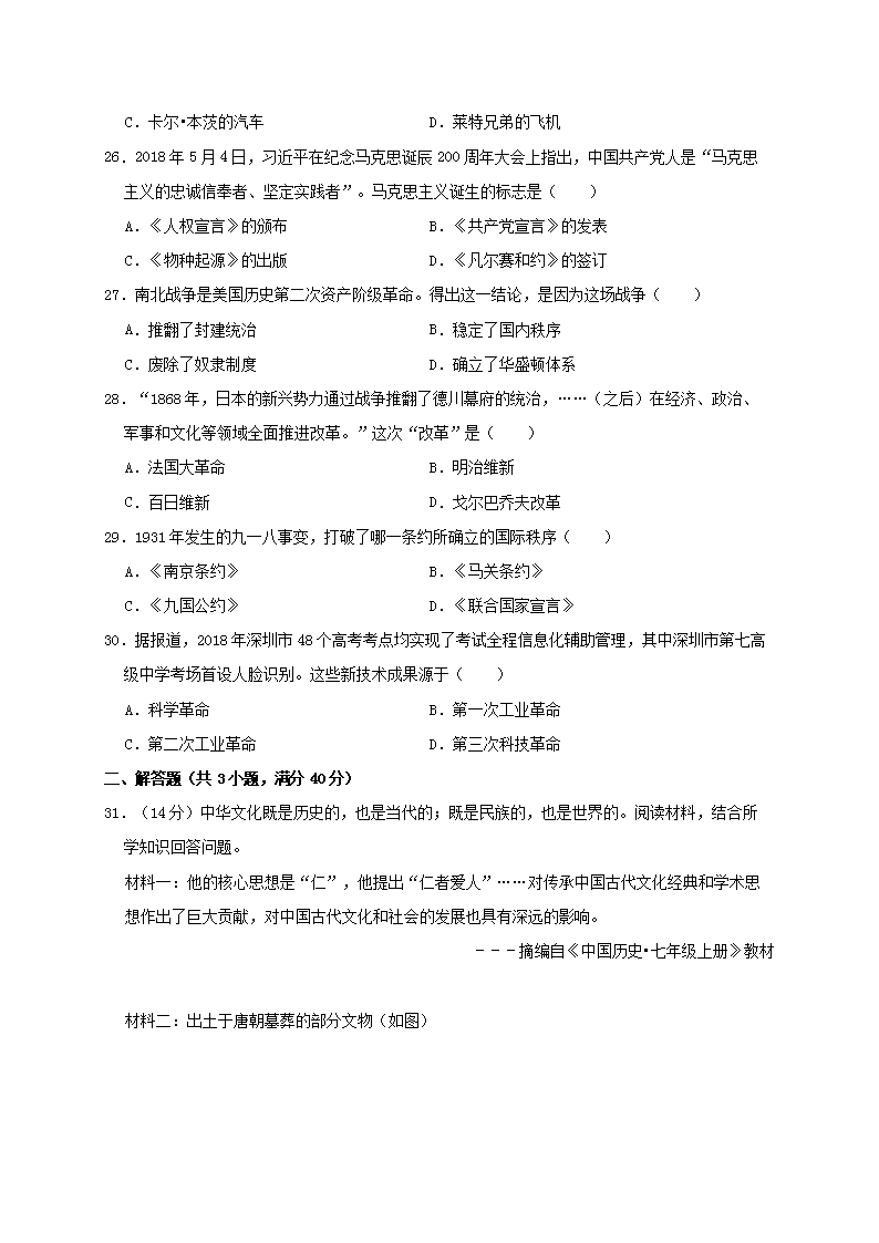 【文档名称】 2018年广东省深圳市中考历史试题及答案(Word版).doc