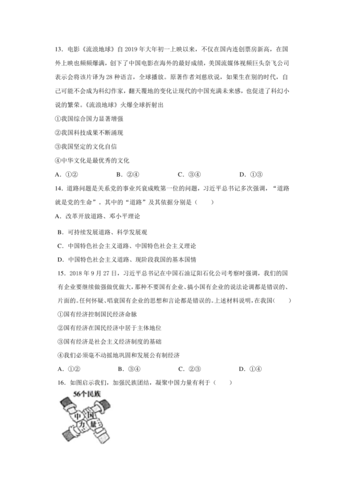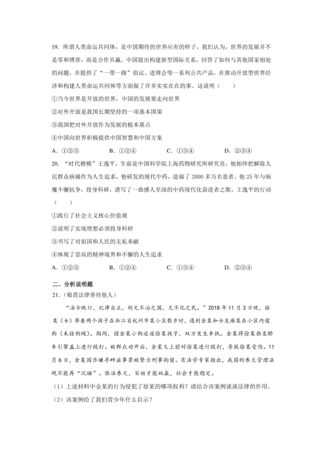 【文档名称】 2020年山东莱芜中考道德与法治真题及答案(图片版).doc