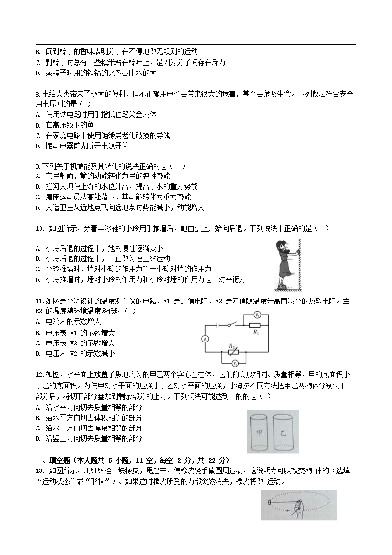 【文档名称】 2019年湖南省长沙市中考物理真题及答案(Word版).doc