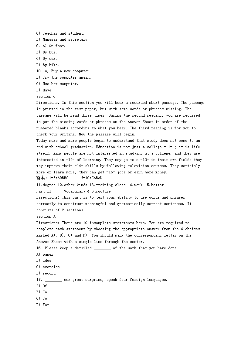 【文档名称】 2008年6月大学英语三级B真题及答案(Word版).doc