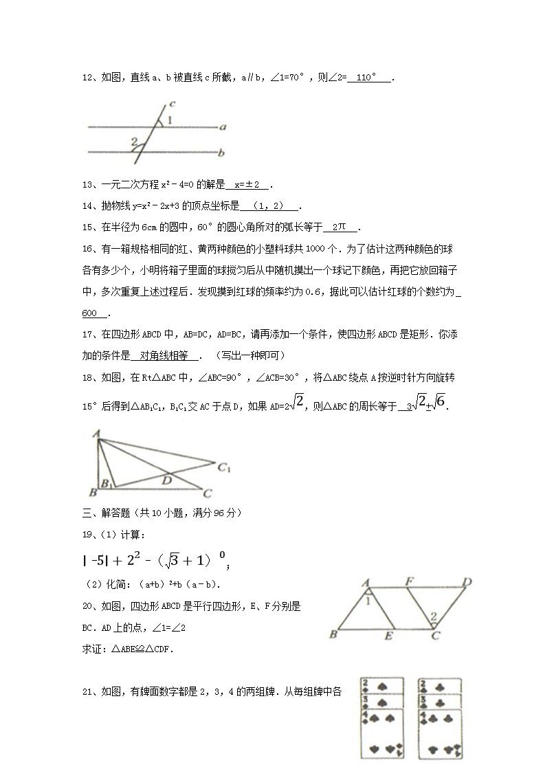 【文档名称】 2011江苏省淮安市中考数学真题(Word版).doc