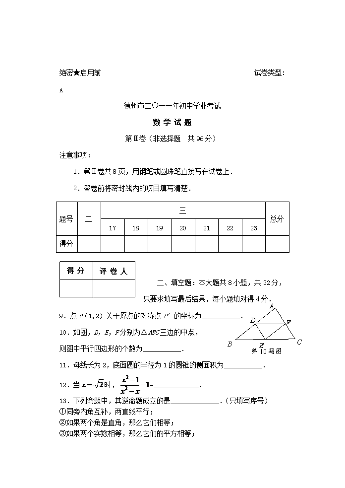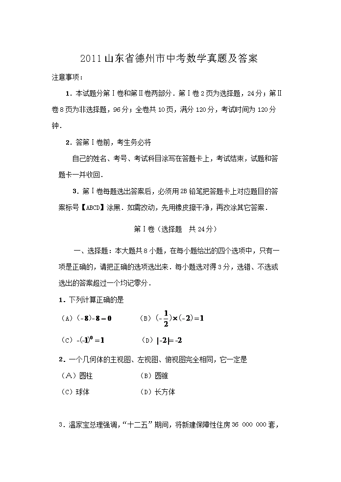 【文档名称】 2011山东省德州市中考数学真题及答案(Word版).doc