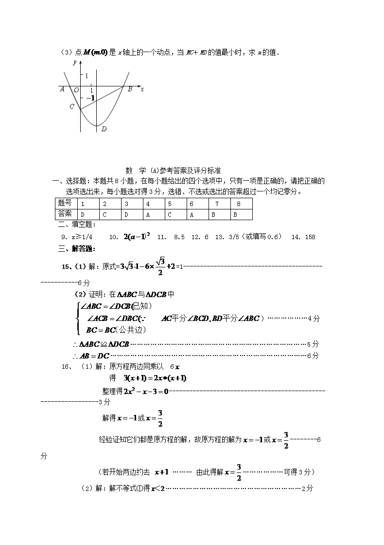 【文档预览】 无忧考网整理发布2011山东省菏泽市中考数学真题及答案(Word版),前五页预览如下: