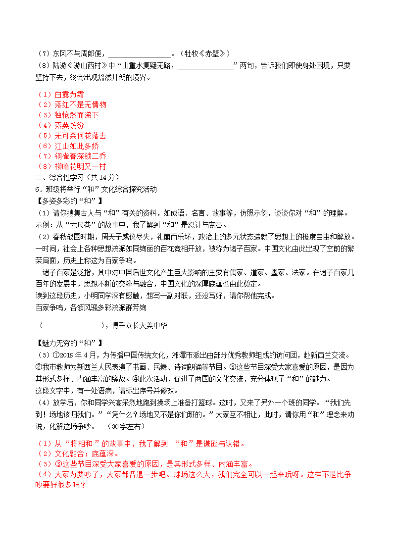 【文档名称】 2019年湖南省湘潭市中考语文真题及答案(Word版).doc