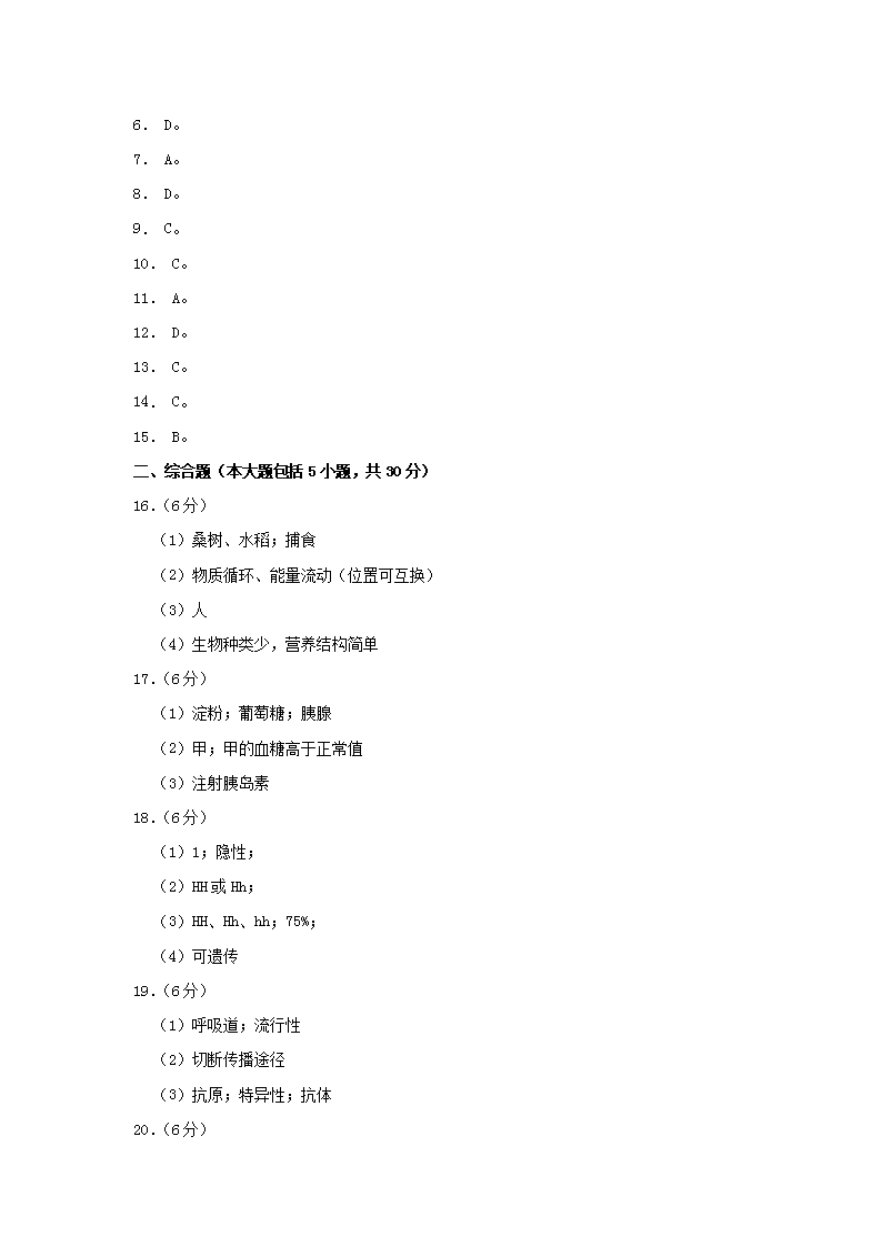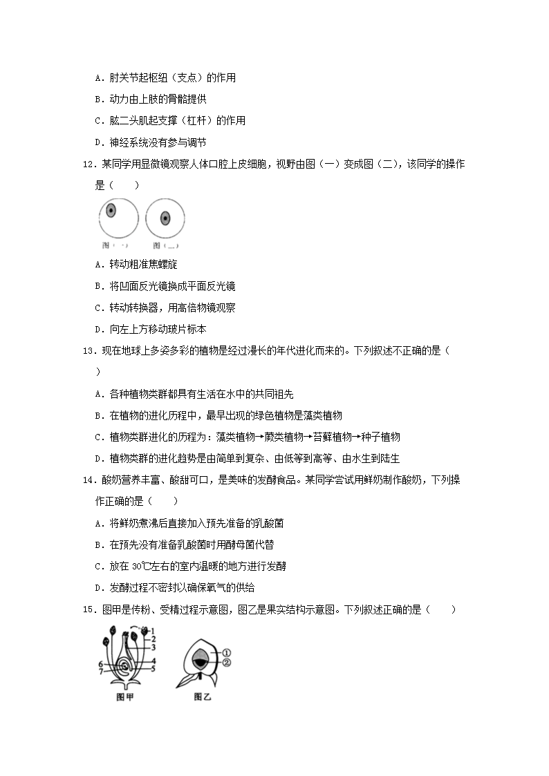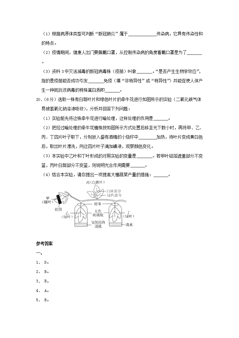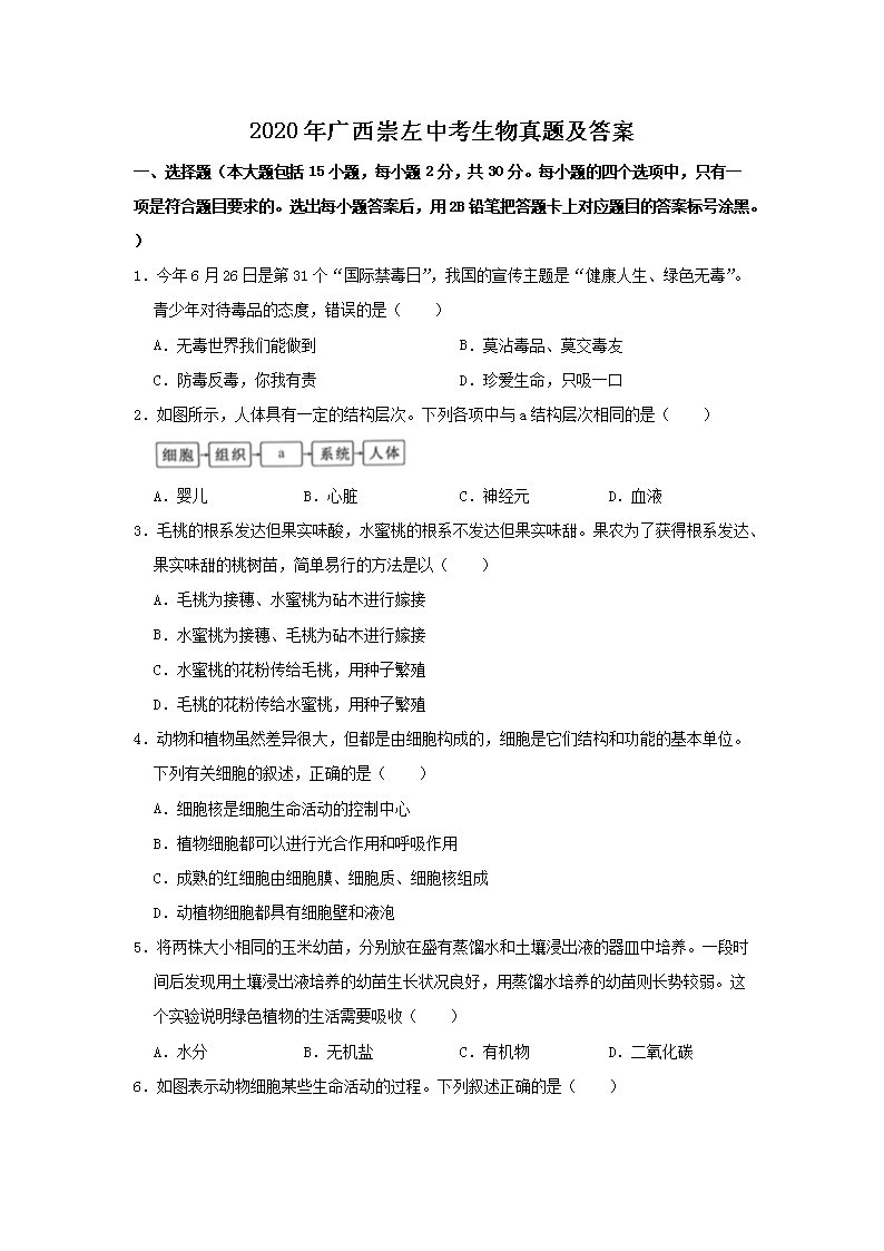 【文档预览】 无忧考网整理发布2020年广西崇左中考生物真题及答案(Word版),前五页预览如下:
