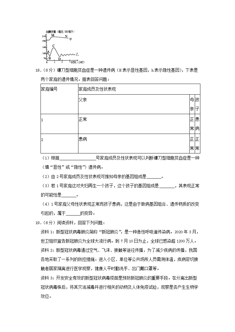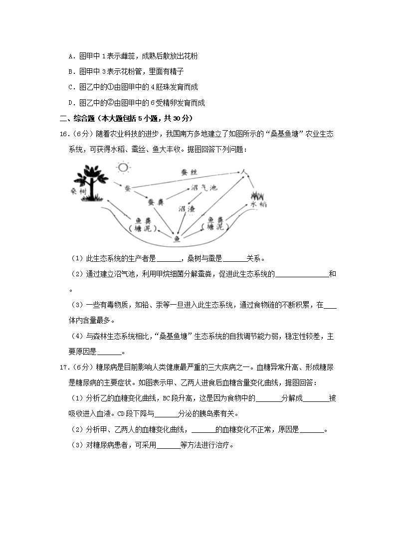 【文档名称】 2020年广西崇左中考生物真题及答案(Word版).doc