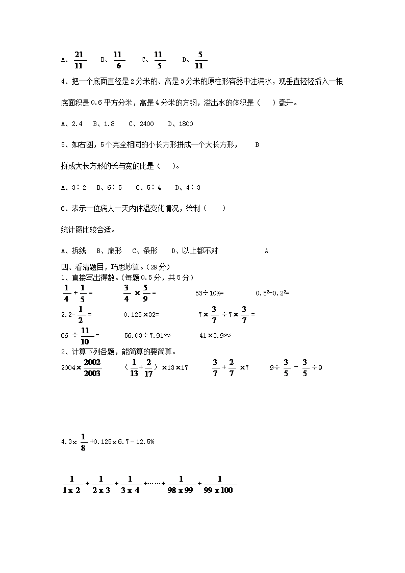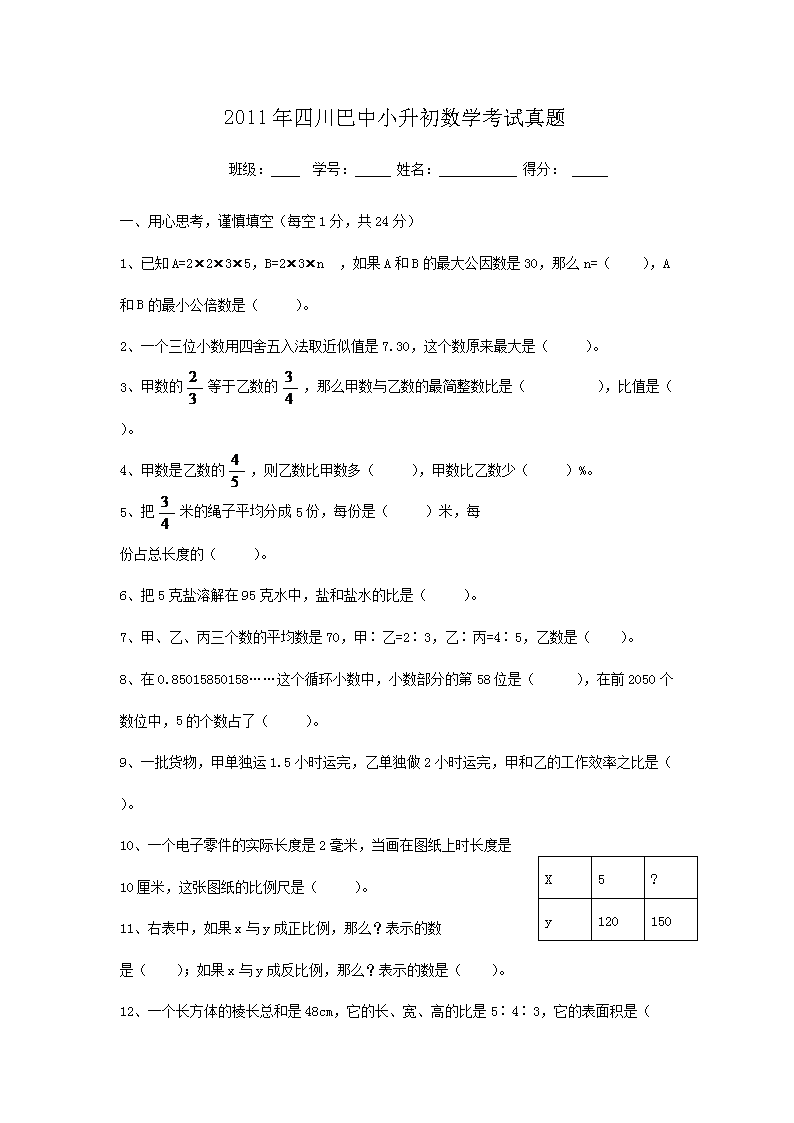 【文档名称】 2011年四川巴中小升初数学考试真题(Word版).doc