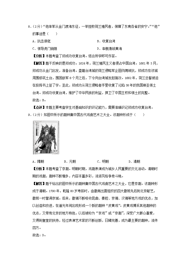 【文档名称】 2019年福建省龙岩市中考历史真题及答案(Word版).doc