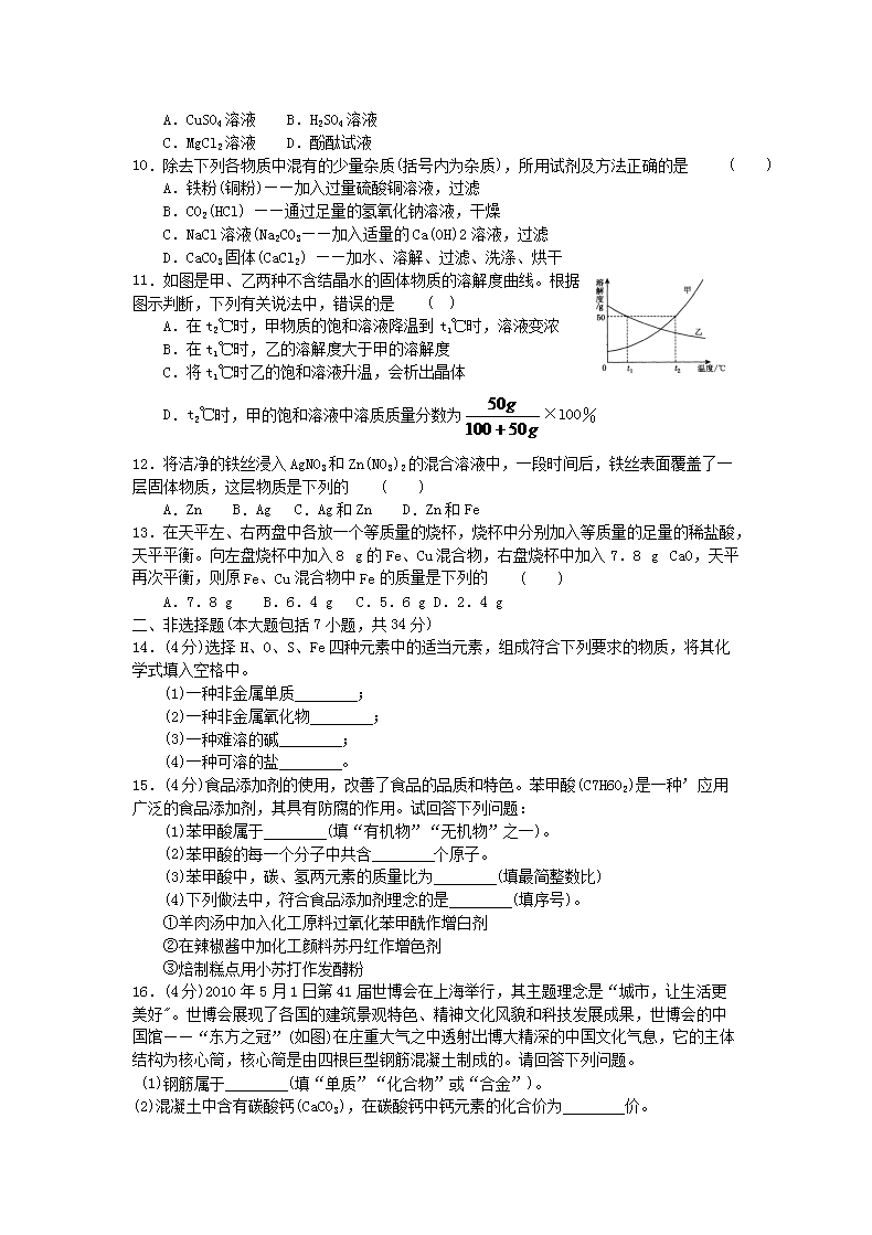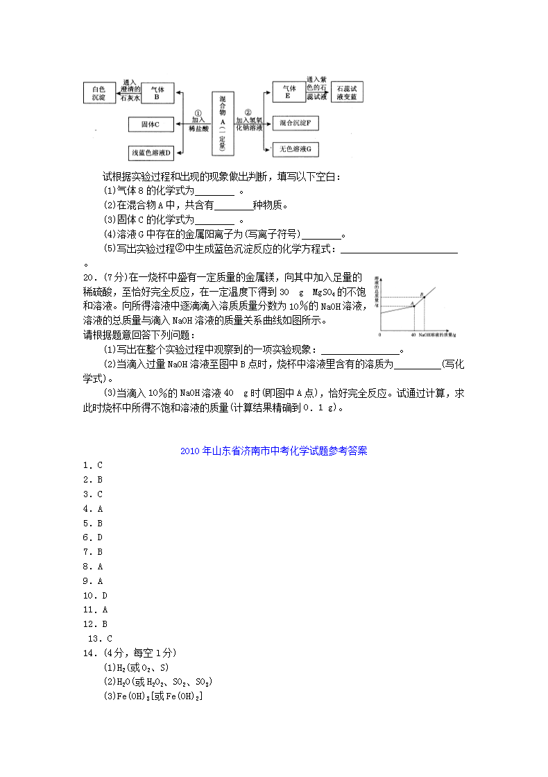 【文档名称】 2010山东省济南市中考化学真题及答案(Word版).doc