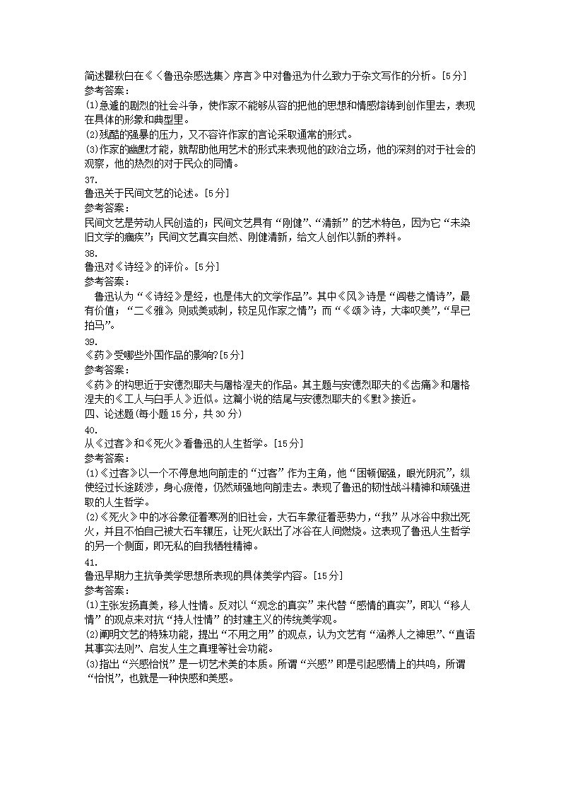 【文档名称】 2001年10月浙江省自学考试鲁迅研究真题及答案(Word版).doc