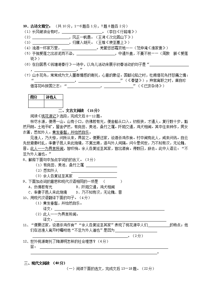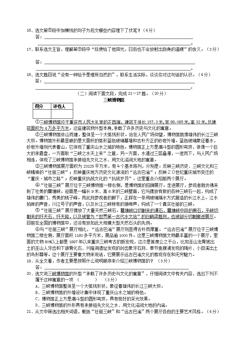 【文档名称】 2007重庆中考语文真题及答案(Word版).doc