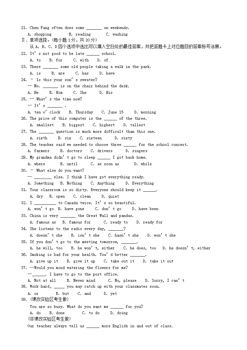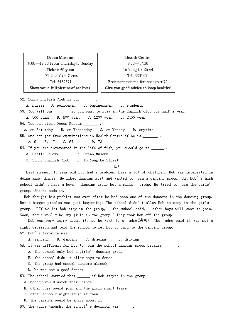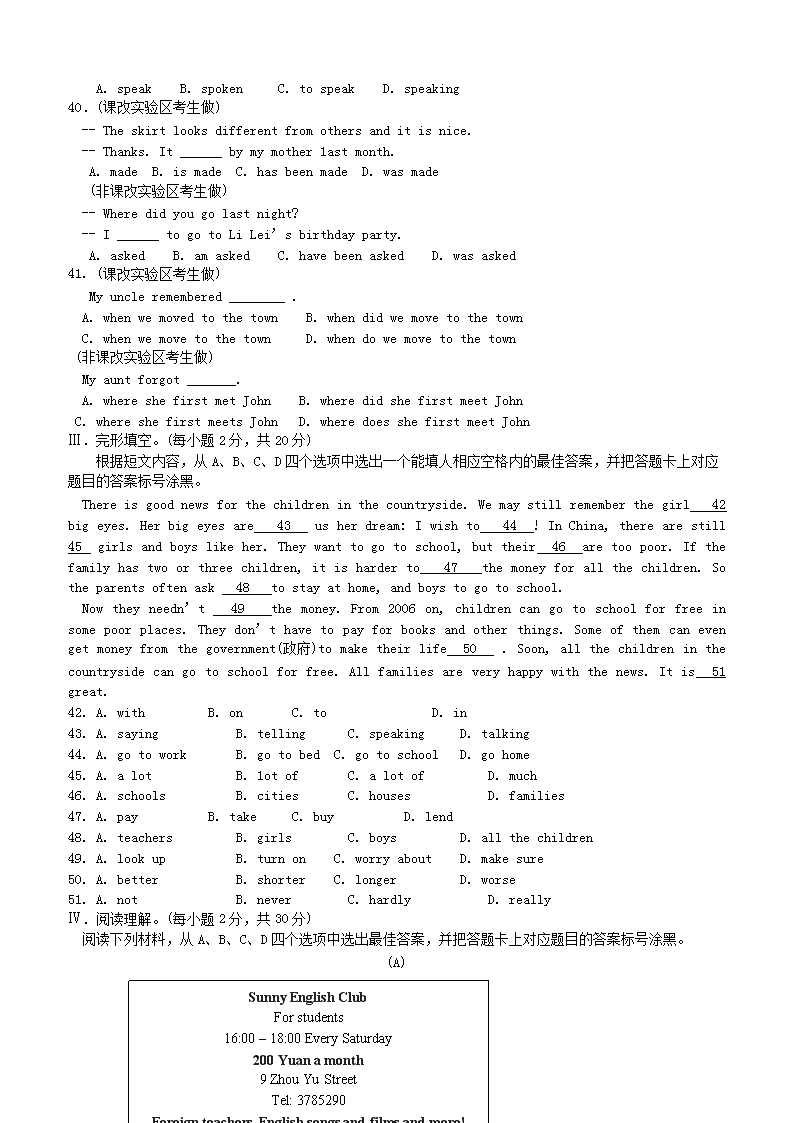 【文档名称】 2006重庆中考英语真题及答案(Word版).doc