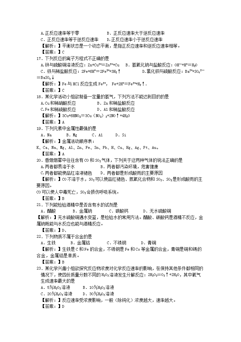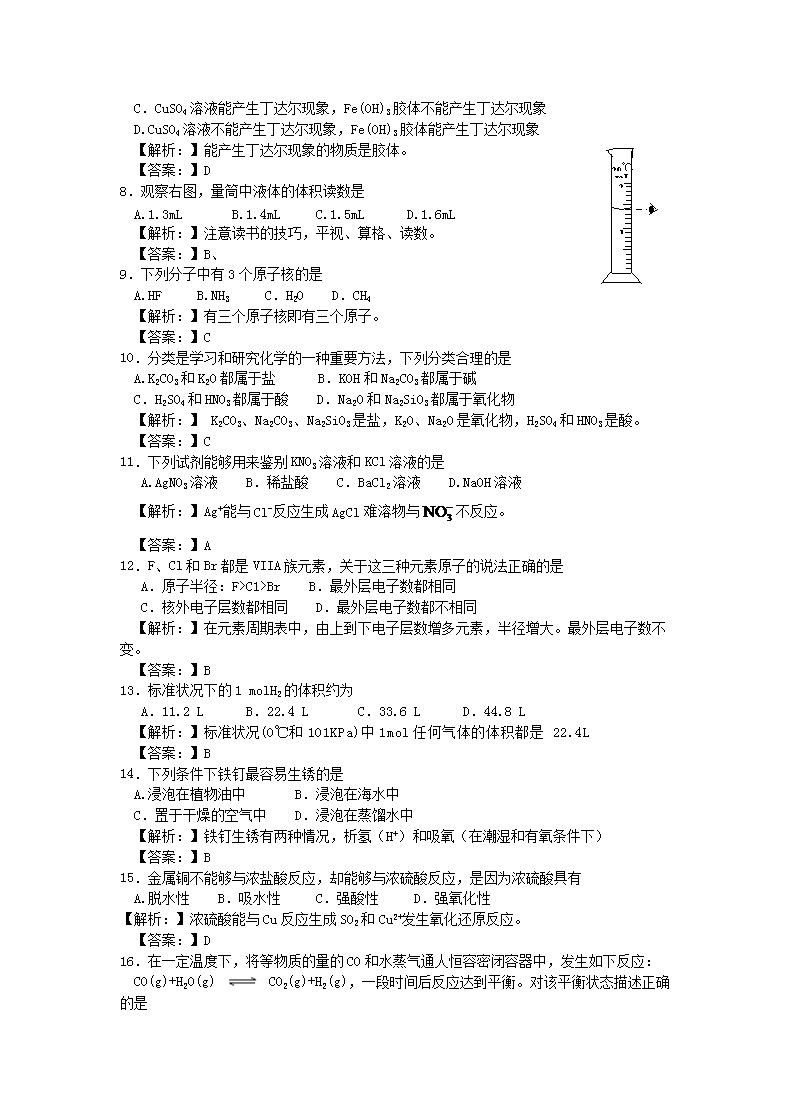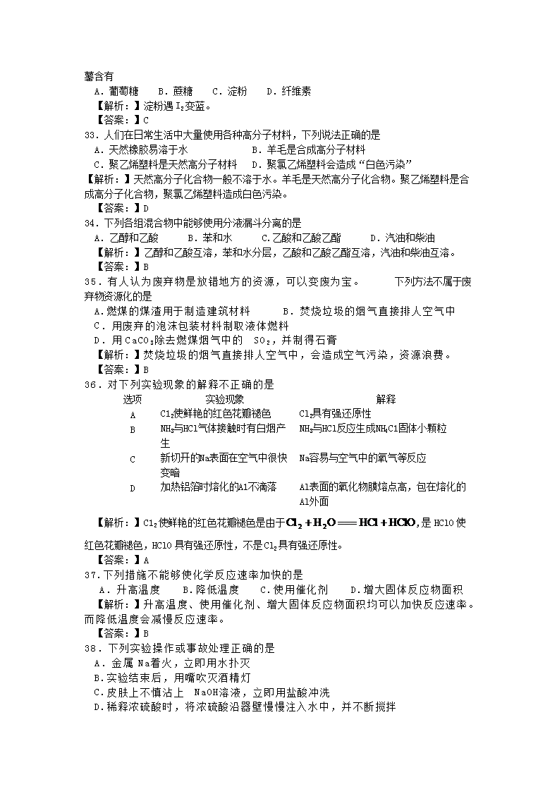 【文档名称】 2011年广东普通高中会考化学真题及答案(Word版).doc