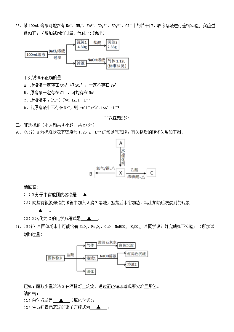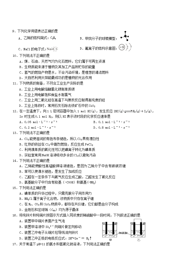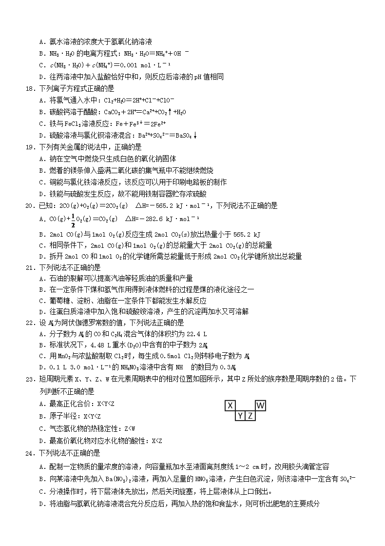 【文档名称】 2016年浙江温州普通高中会考化学真题及答案(Word版).doc