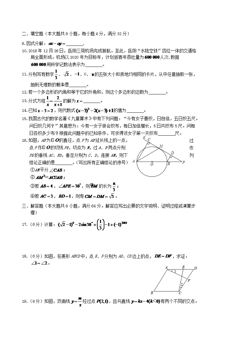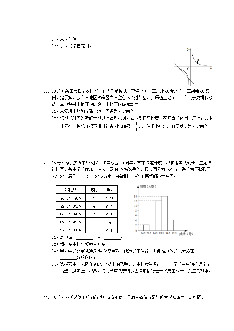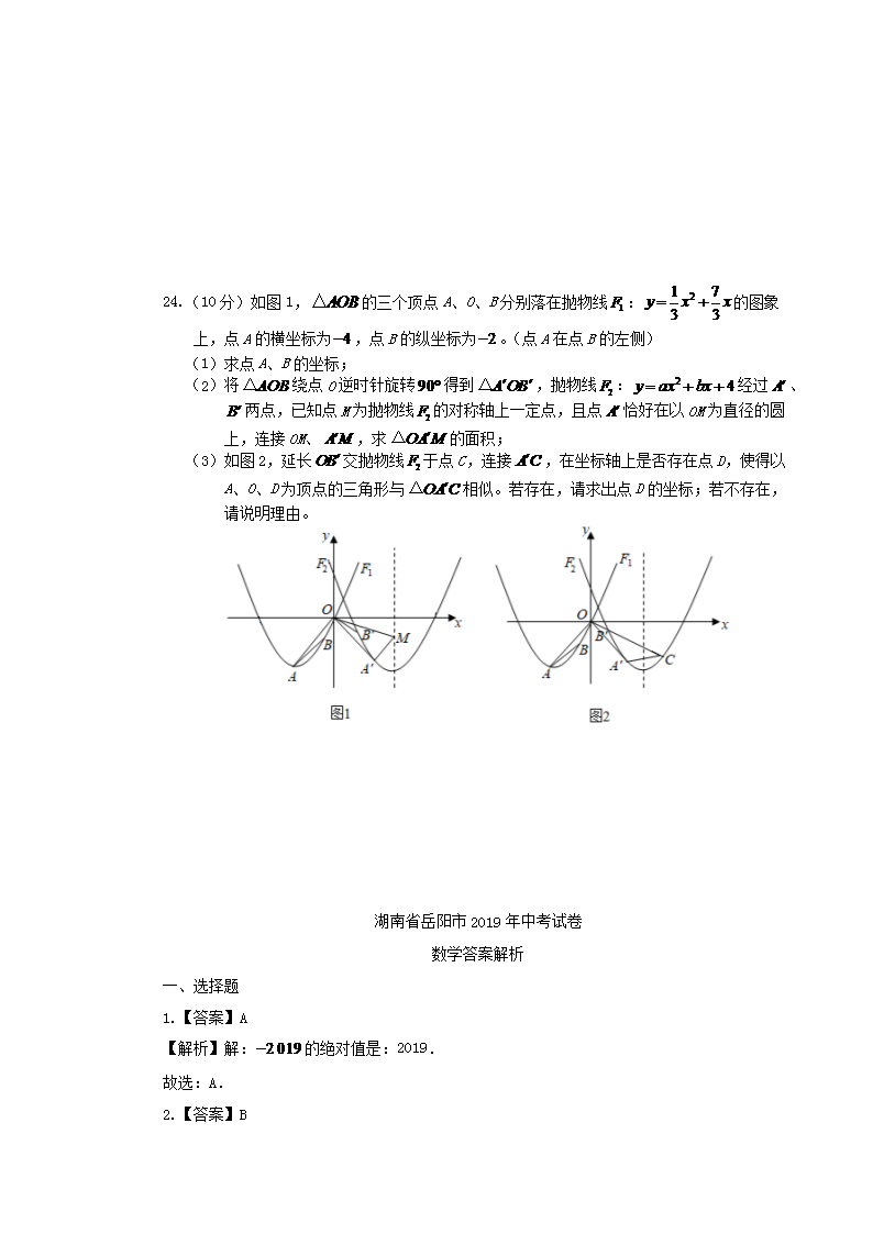 【文档名称】 2019年湖南省岳阳市中考数学真题及答案(Word版).doc