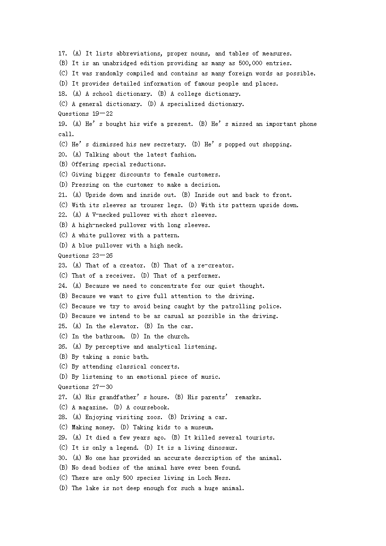 【文档预览】 无忧考网整理发布2006年9月翻译资格中级英语口译笔试真题及答案(Word版),前五页预览如下: