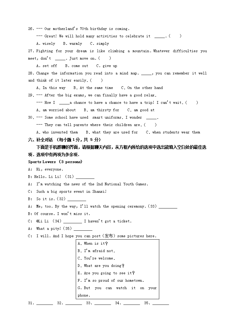【文档名称】 2019年山西省太原市中考英语真题及答案(Word版).doc