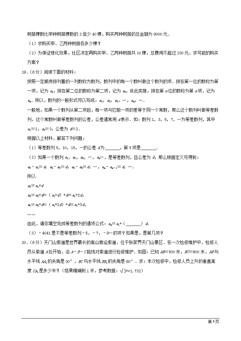 【文档名称】 2019年湖南省张家界市中考数学真题及答案(Word版).doc