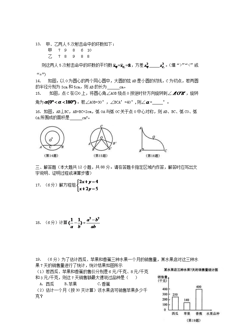 【文档名称】 2010江苏省南京市中考数学真题及答案(Word版).doc